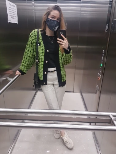Кофта оказалась оверсайз, не приталенная, плечи не на месте, а где то на сгибе локтя. На размер 42 для меня с тонкой талией и хрупкой фигурой смотрится как мешок( И ещё - она колется, с футболкой не наденешь, только с кофтой с длинным рукавом, и то вся шея исчесалась(