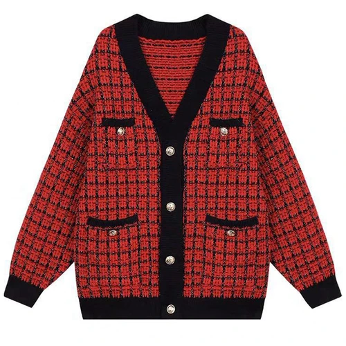 Женский трикотажный кардиган, с V-образным вырезом, Осень-зима, 2021