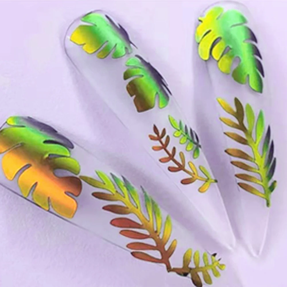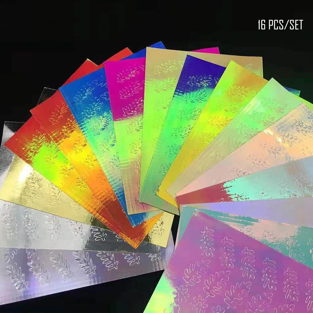 Голографический 3D лист для ногтей, 16 листов в партии, наклейка для ногтей с лазерным клеем, наклейка для маникюра своими руками, наклейка для дизайна ногтей