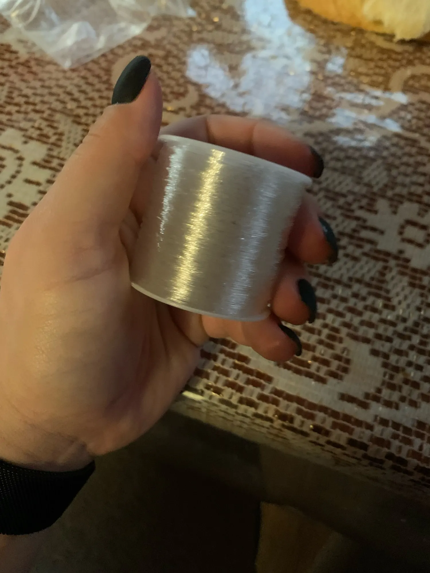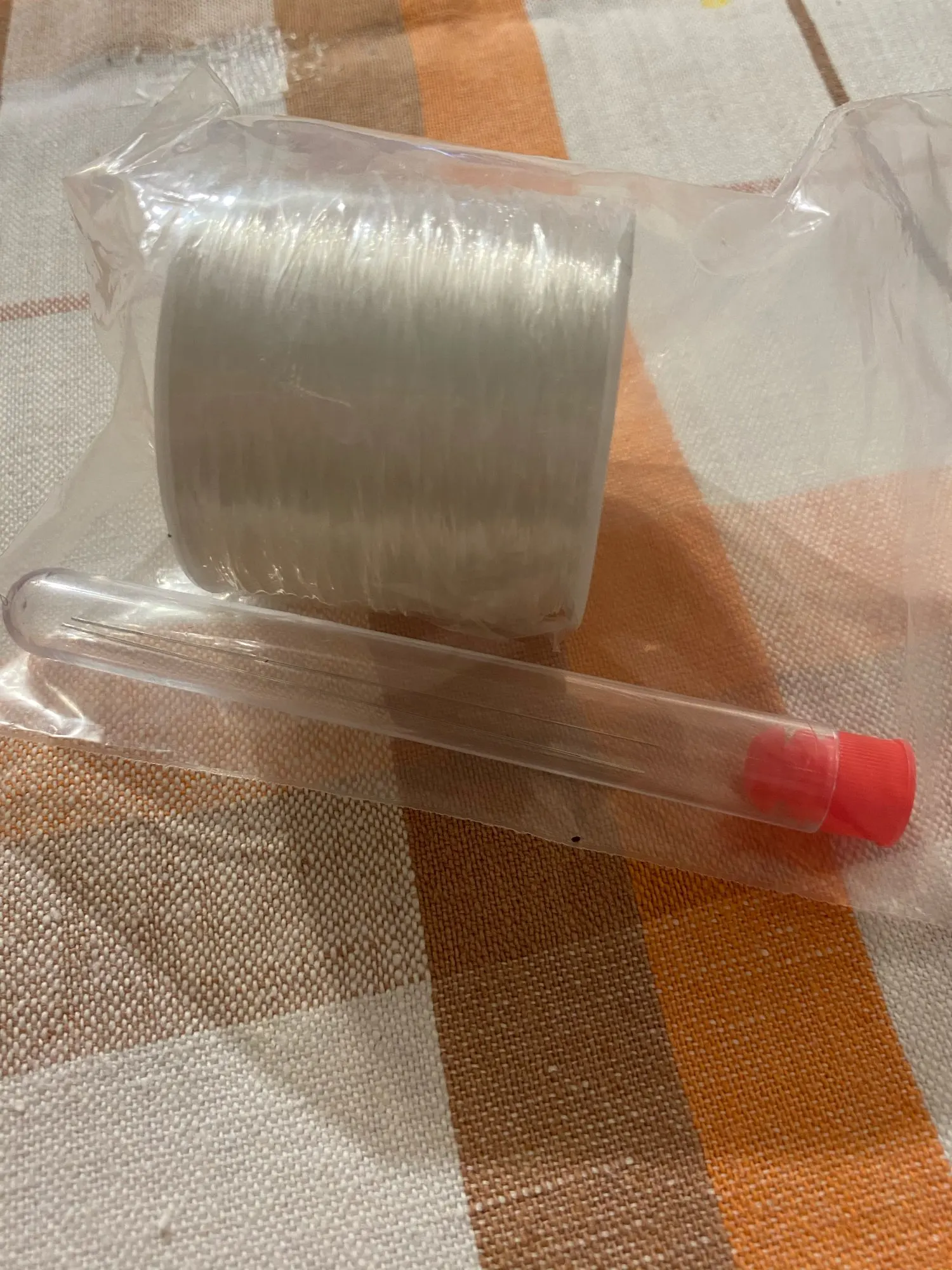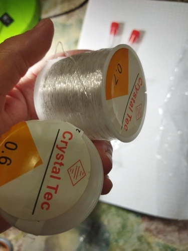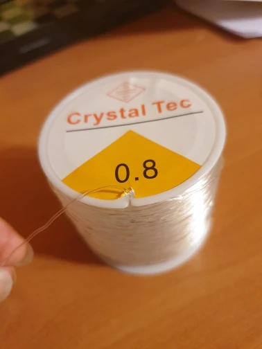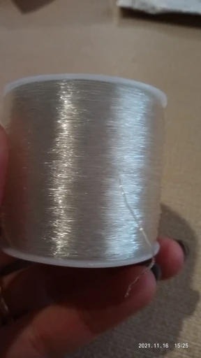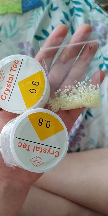 Хорошая эластичная леска. Кто-то писал, что 0,5мм идеальна для бисера 2мм, но я не совсем согласна, надо было 0,4мм брать. Насаживается, конечно же без проблем, но вот свободно по ней не передвигаются, иногда растягивают леску, застревают и тем самым лежит браслет не красиво на руке.
