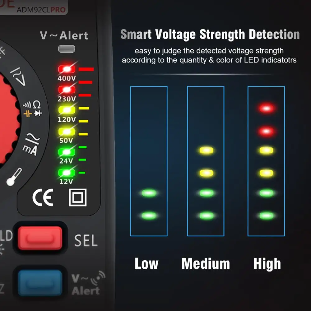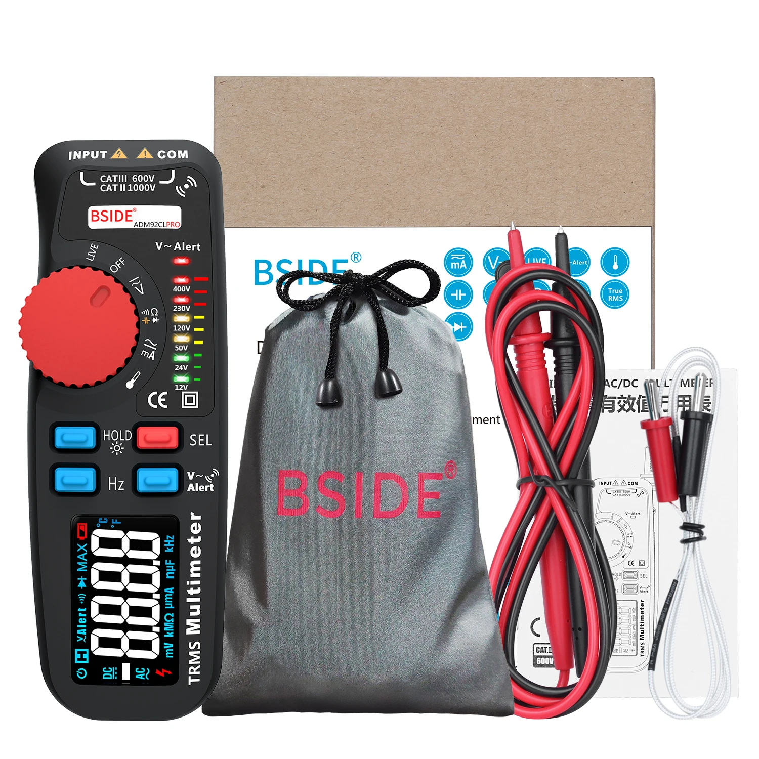 Цифровой вольтметр BSIDE ADM92CL, истинное среднеквадратичное значение, мультиметр, 6000 отсчетов, Автоматический диапазон измерения напряжения, усилитель Ом, Гц, тестер цепи, температуры, диодов