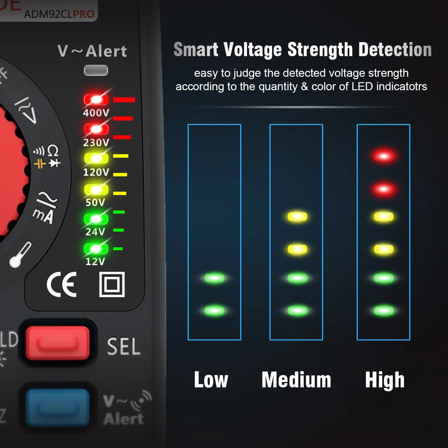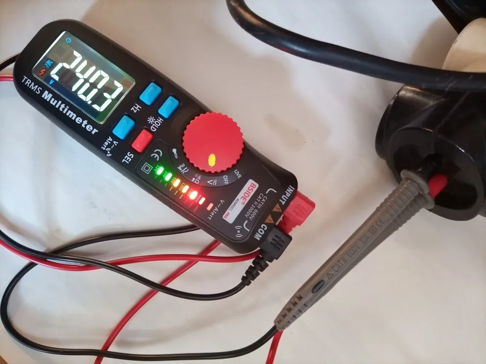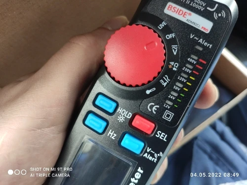 хороший мультиметр, есть маленький этот ещё меньше. щупы в комплекте длинные, поставил короткие от другого мультиметра. антена v-alert находится под пазом, куда вставляется щуп. если туда вставить щуп чувствительность теряется полностью. скрытую проводку не обнаруживает, для этого нужны другие приборы. при измерении переменного напряжения, показания дублируются светодиодами. пределы измерения автоматические, в ручную задать нельзя. вобщим хороший вариант "мультиметр-ручка", если не нужно измерять силу тока и не лезть в силовые щитки.