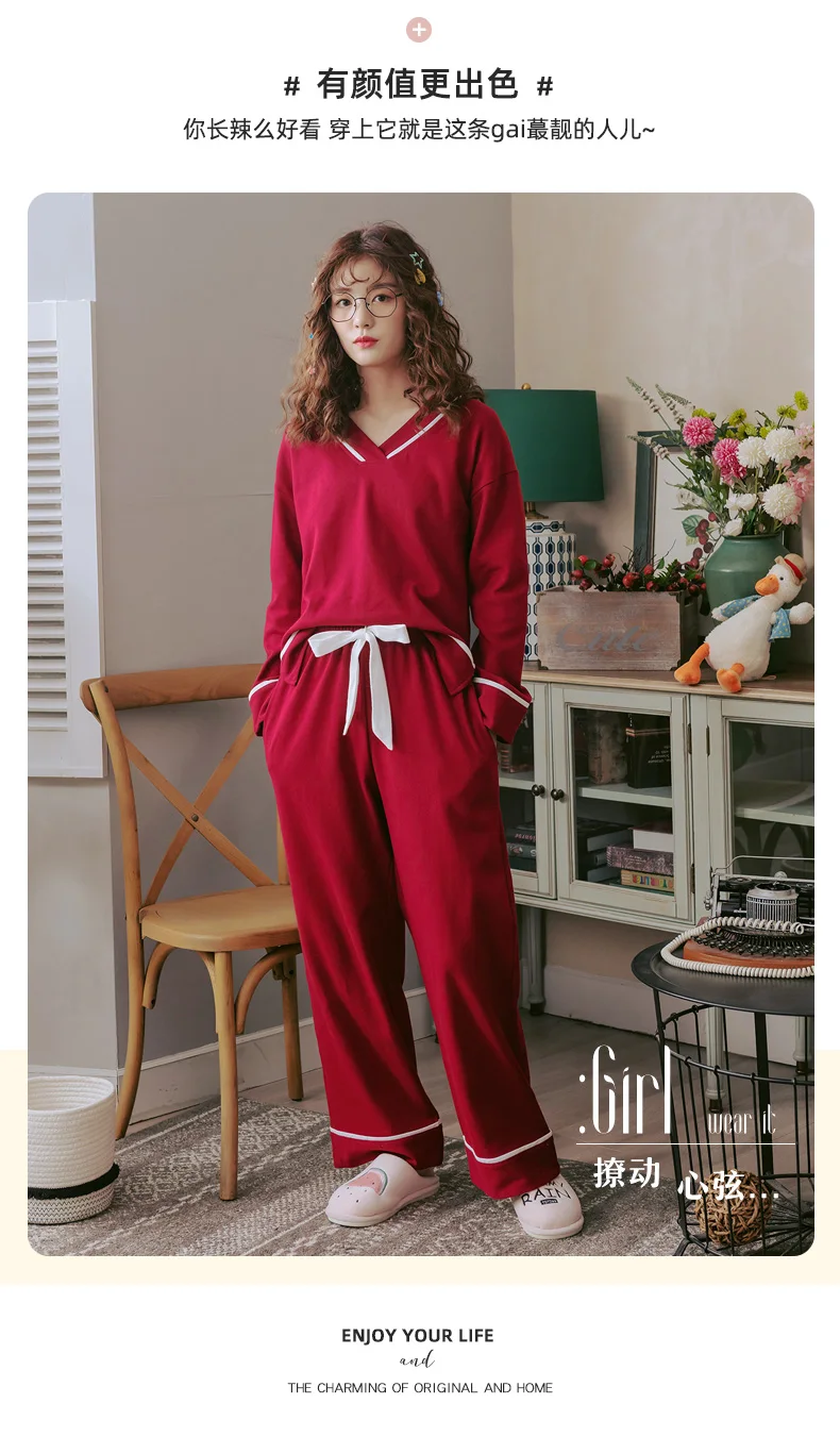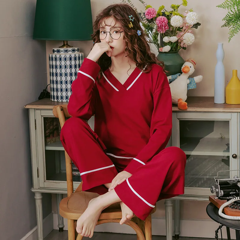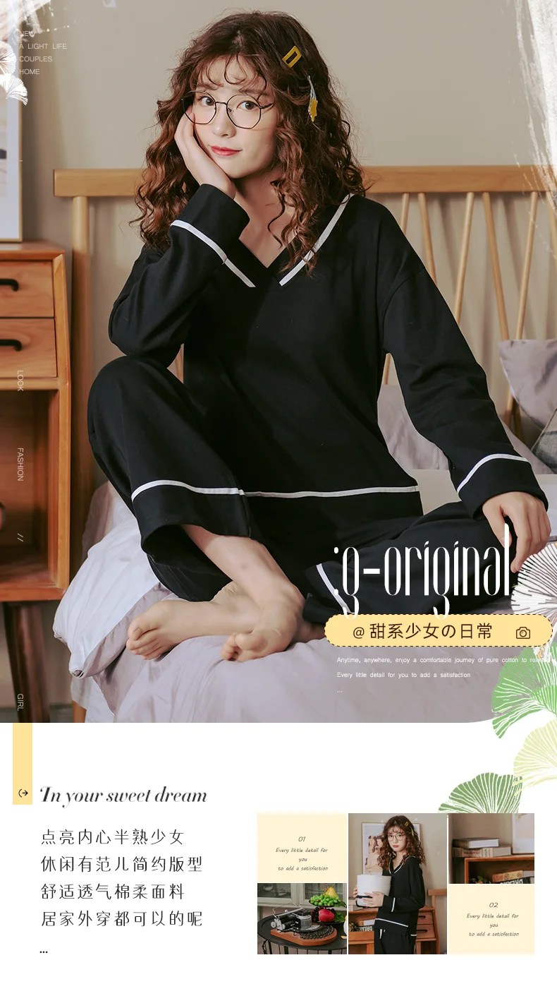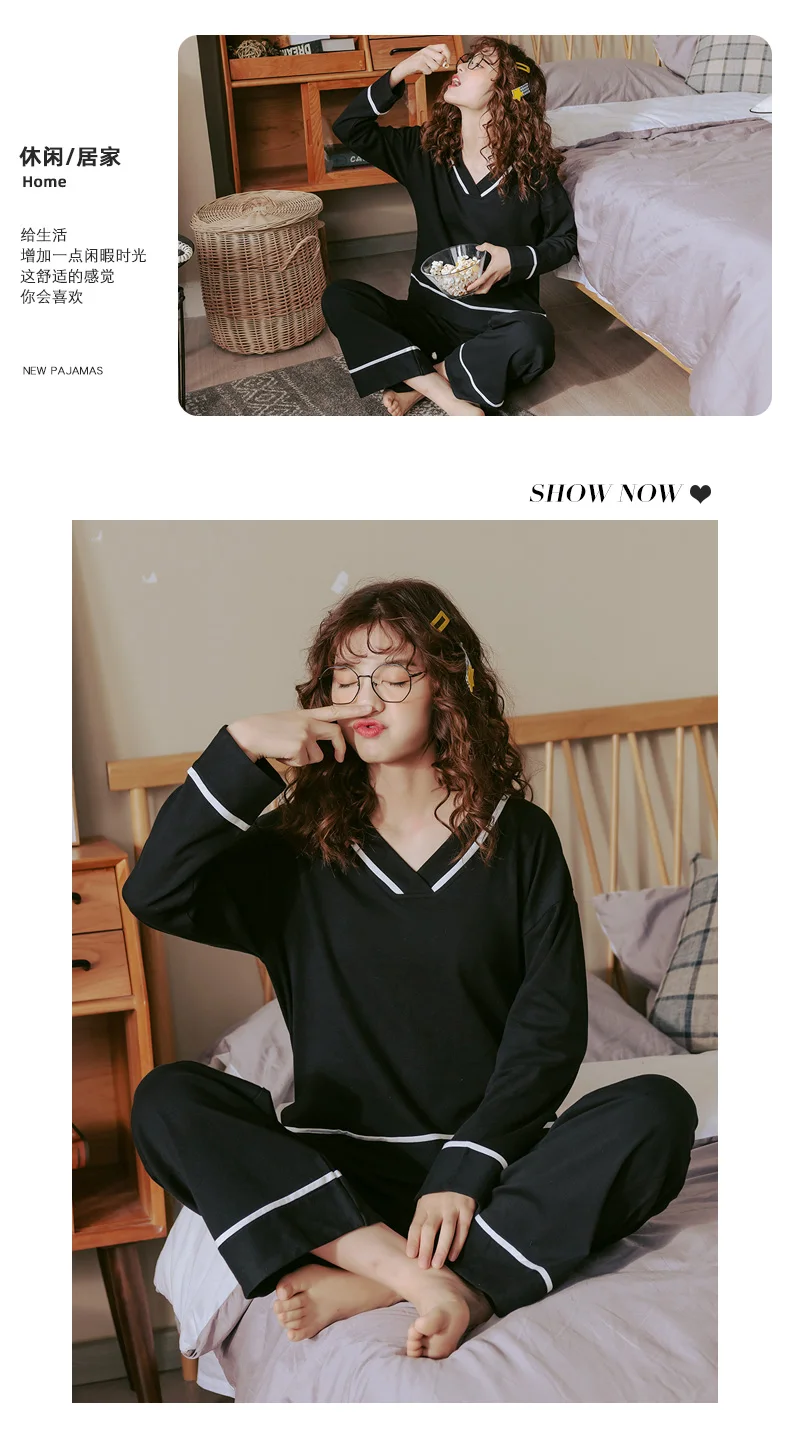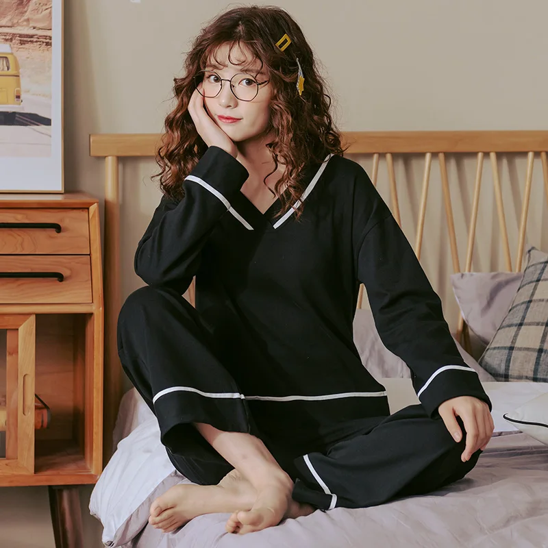 Пижама женская хлопковая, с V-образным вырезом, 3XL, осень 2021