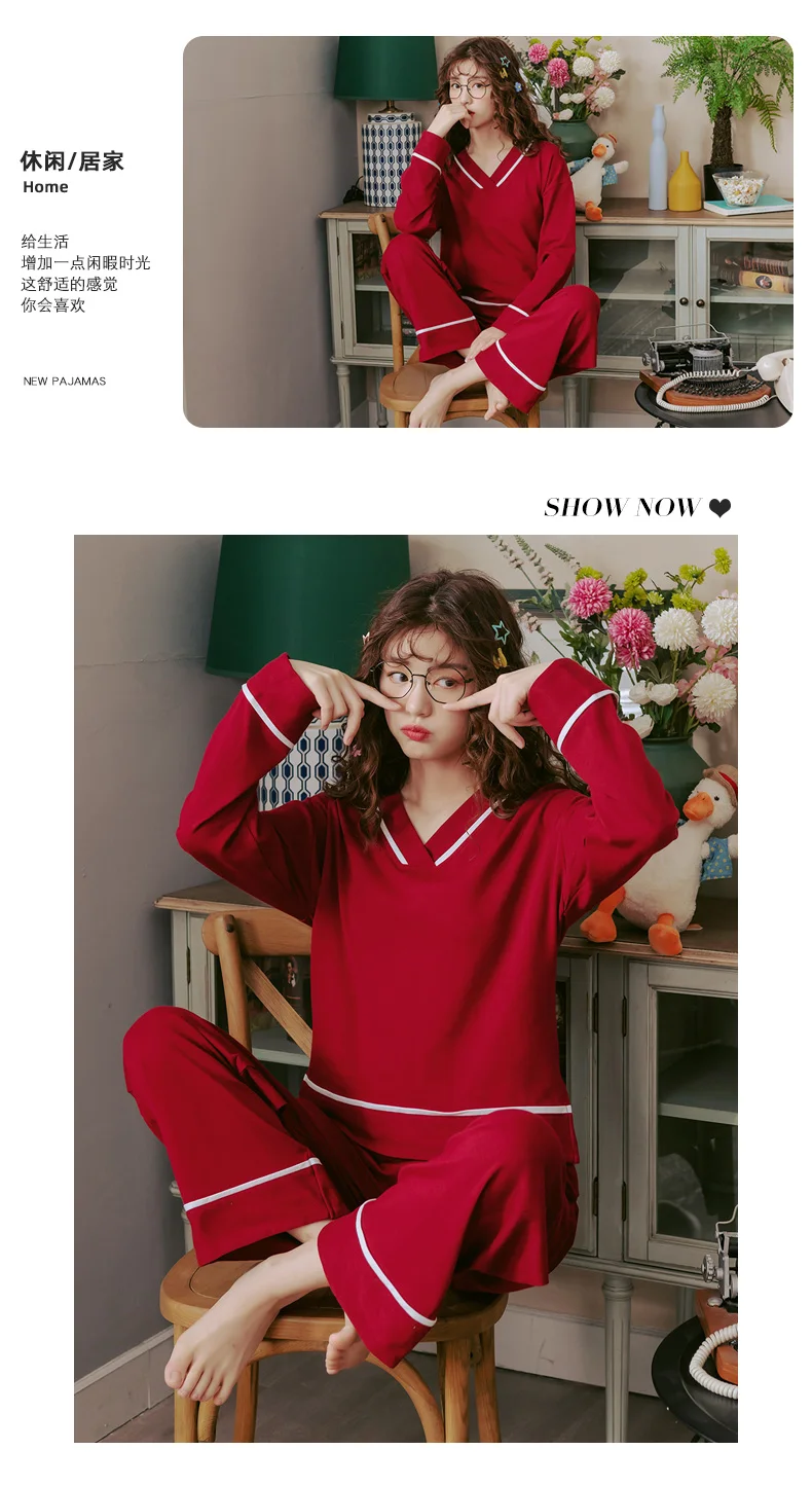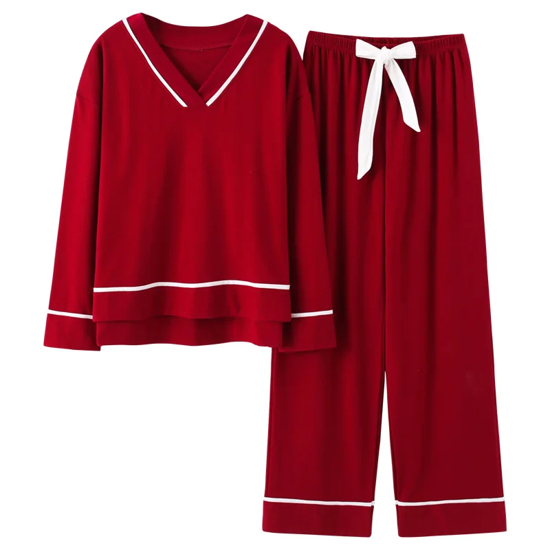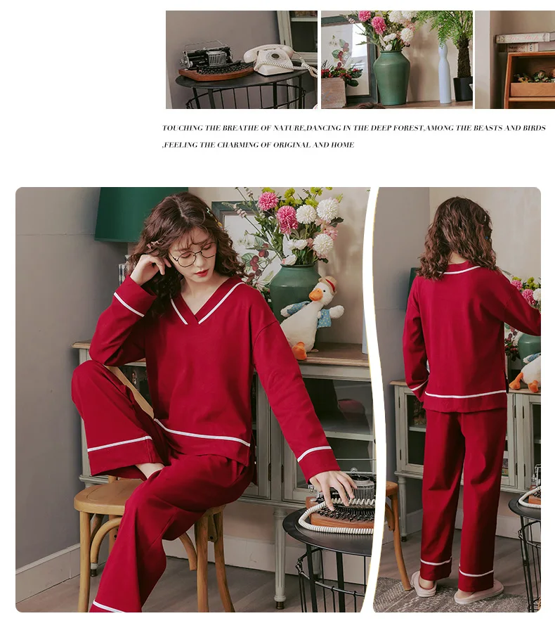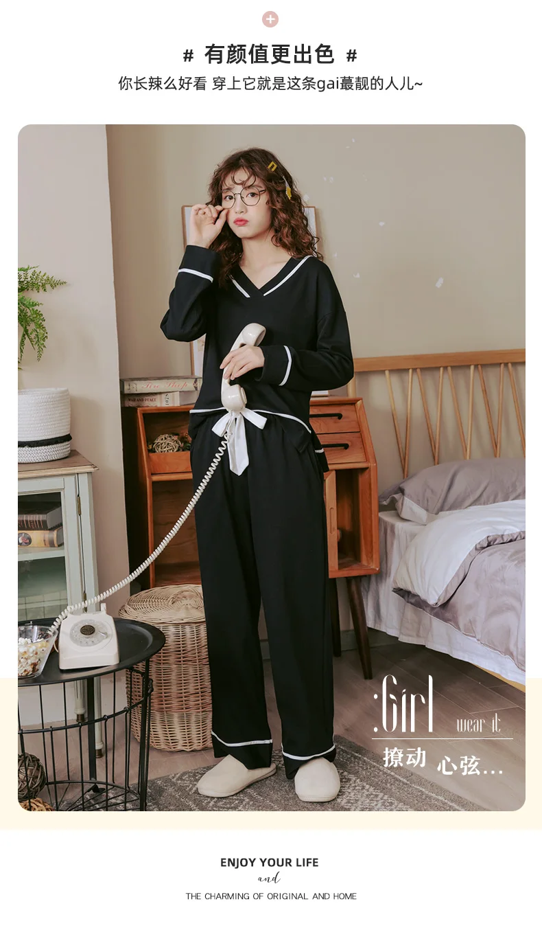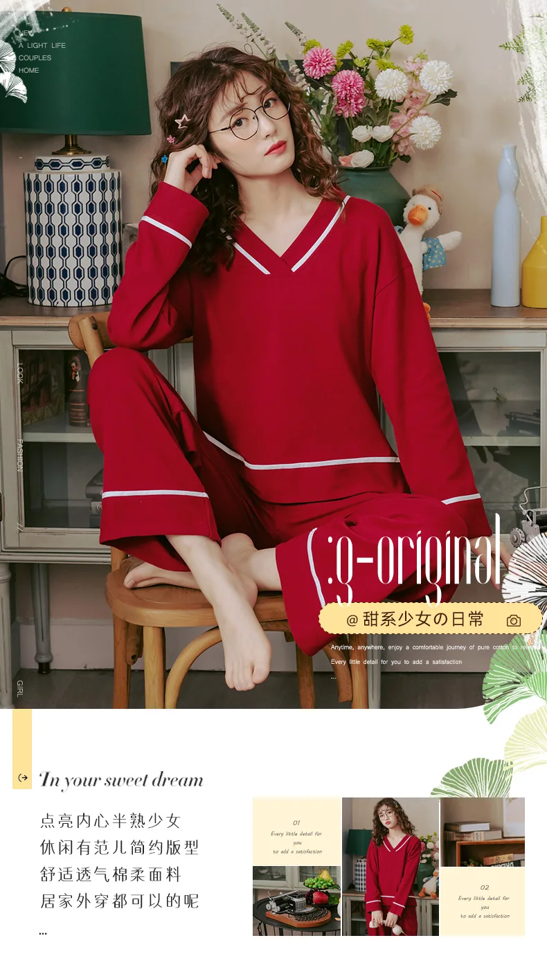 Пижама женская хлопковая, с V-образным вырезом, 3XL, осень 2021