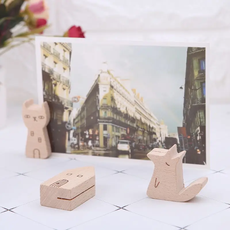 Симпатичная мультяшная животная деревянная папка для информации и фотографий зажим для заметок доска для демонстрации зажимов подставка для сообщений держатель X6HA