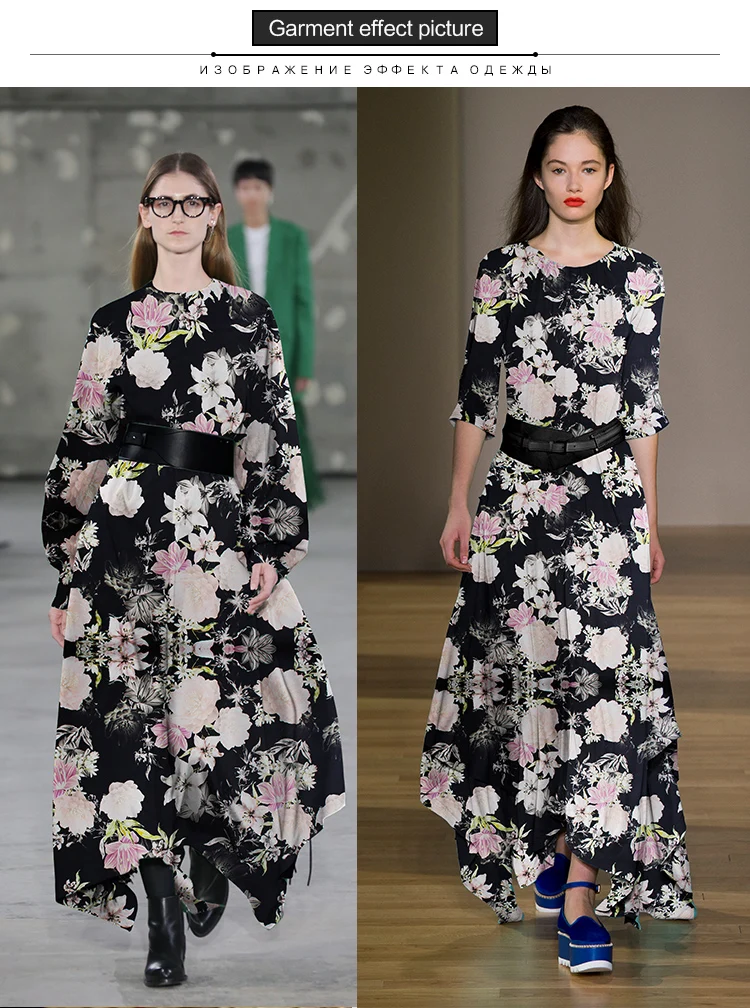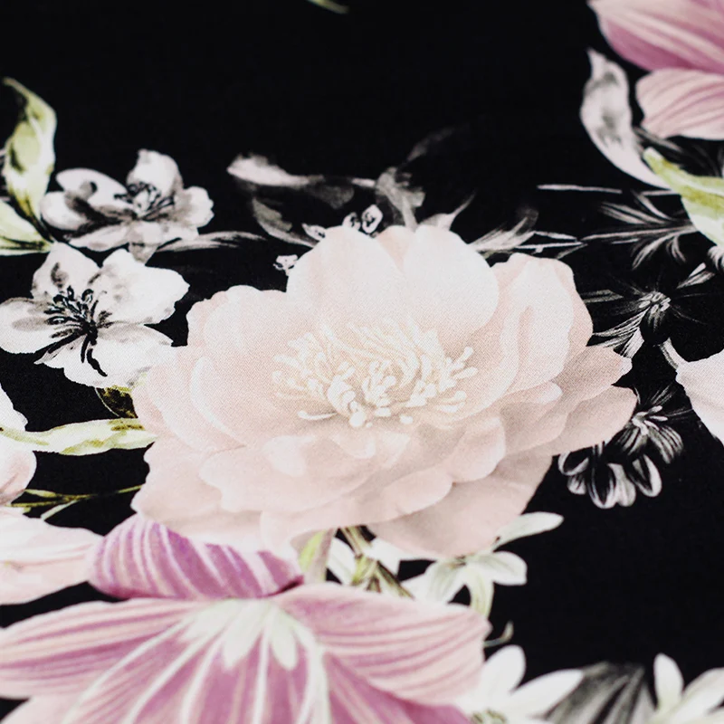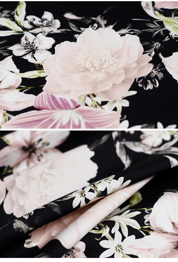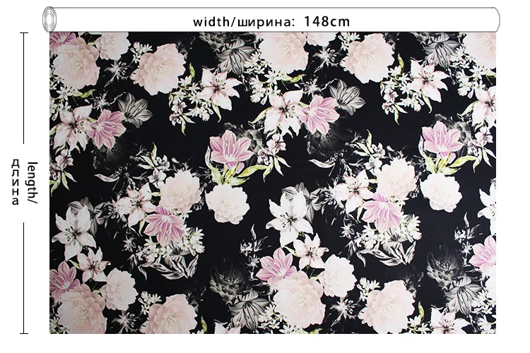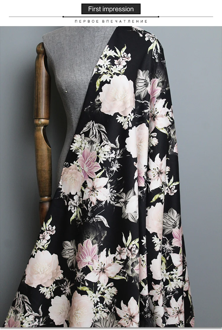 Pearlsilk черного цвета с узором цветы; цифровые печатные эластичный атлас дрель ткани материалы для одежды осеннее платье Шитье Ткань Fresshipping