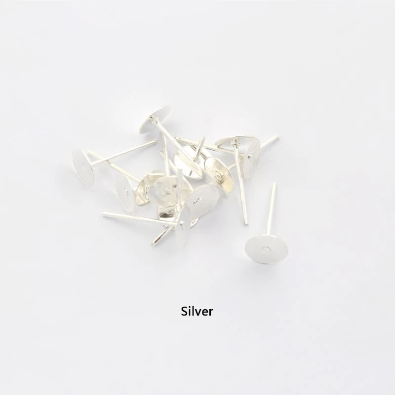 Пустая основа для сережек-гвоздиков, серебристаяЗолотистая основа для сережек-гвоздиков, аксессуары для бижутерии, 200 шт., 46810 мм