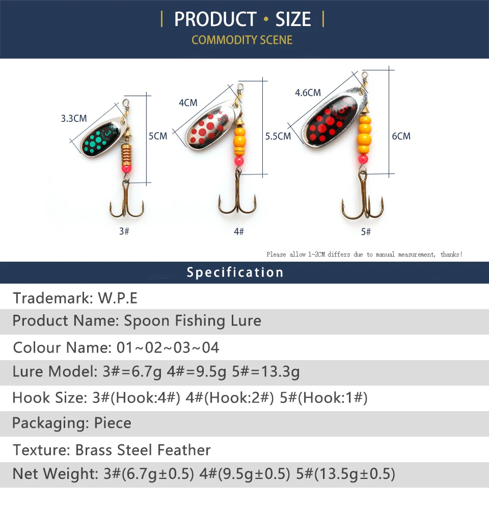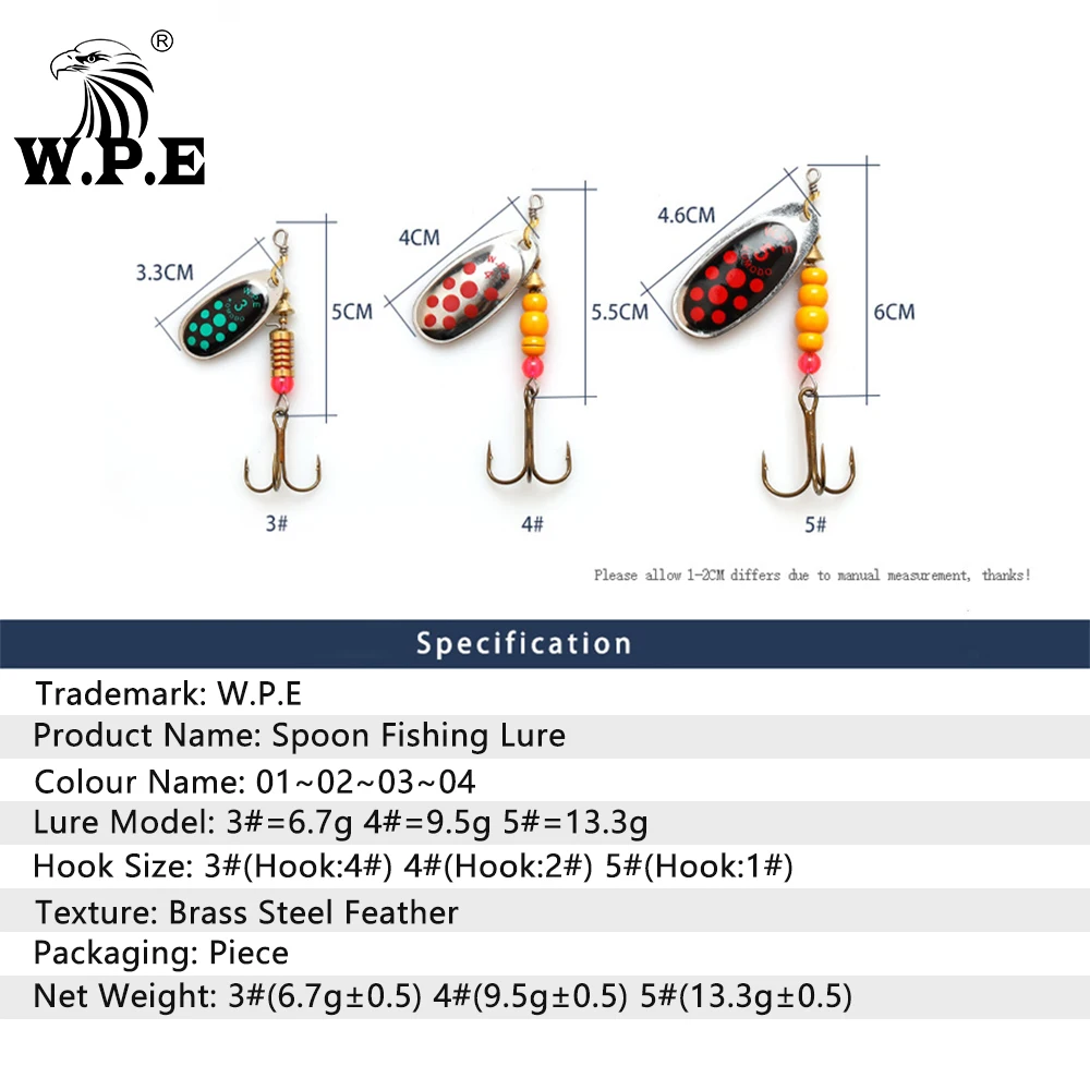 W.P.E, новая блесна, 1 шт., 3 #4 #5 #, приманка в виде ложки, рыболовные снасти, тройной крючок, металлическая жесткая блесна, рыболовная приманка на окуня