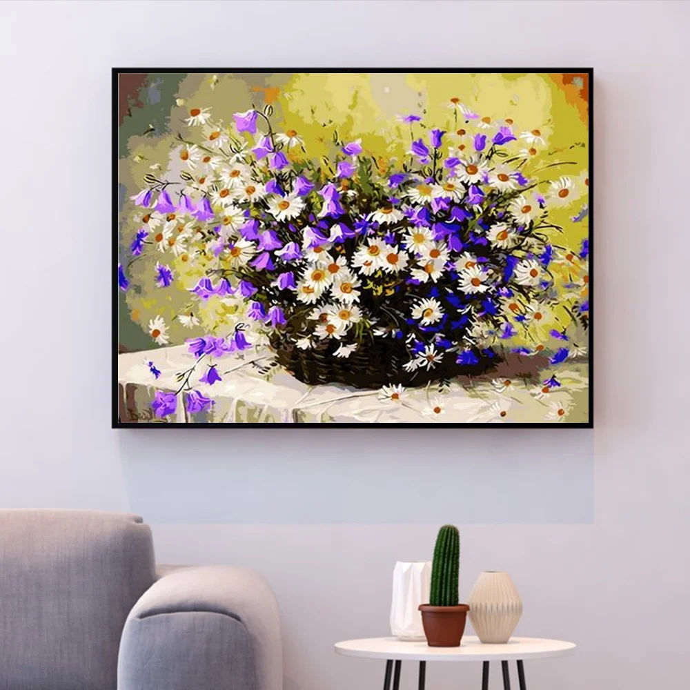 Цветные цветы Diy картина маслом по номерам Современная Настенная к...