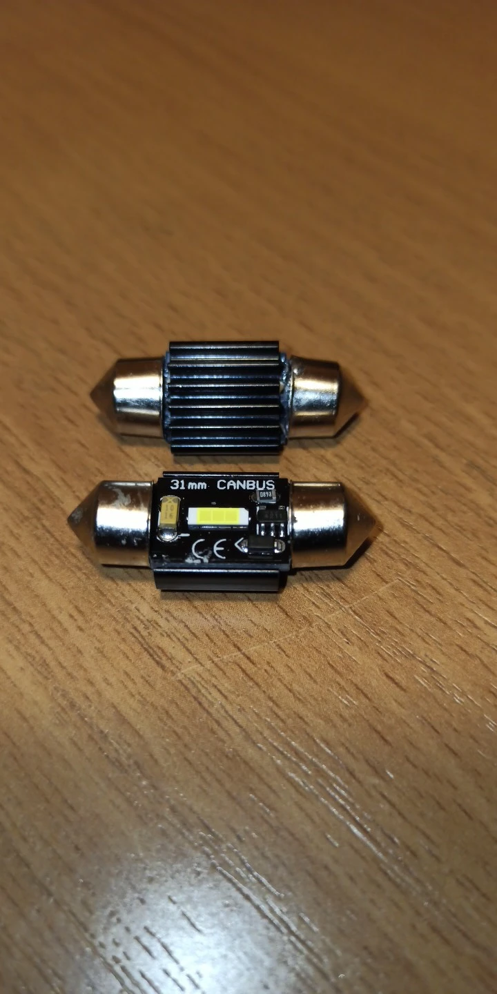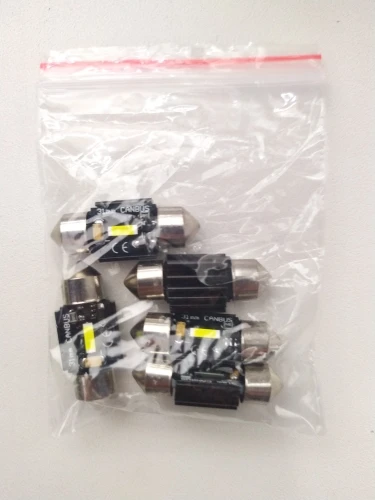 Неплохие лампочки - светят ярко, но очень сильно греются. Без напилинга не обойтись - придется перепаивать резистор. Впринципе, был морально к этому готов. Правильно сбалансированных лампочек (яркость - нагрев), хрен найдешь. На этих, хоть доступ к резистору есть. Продавец отправил быстро. Доставка - две недели в Краснодар. Упаковка нормальная - никто не пострадал.