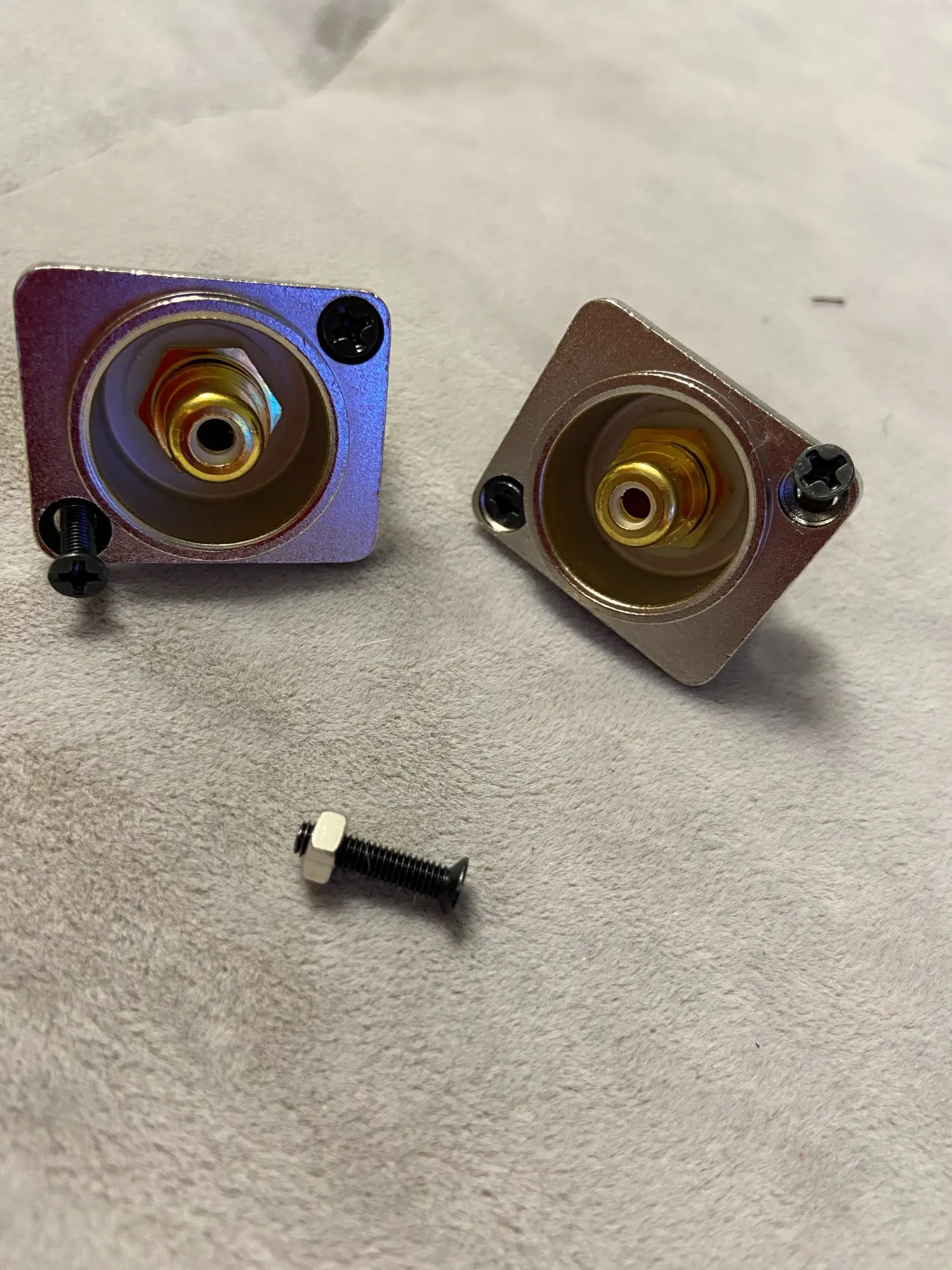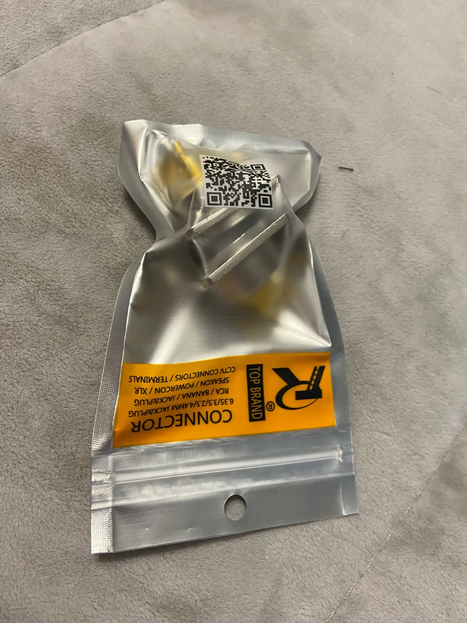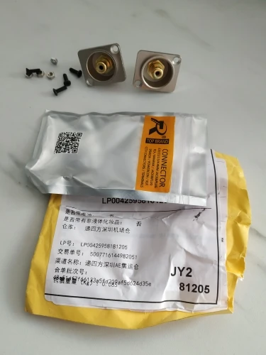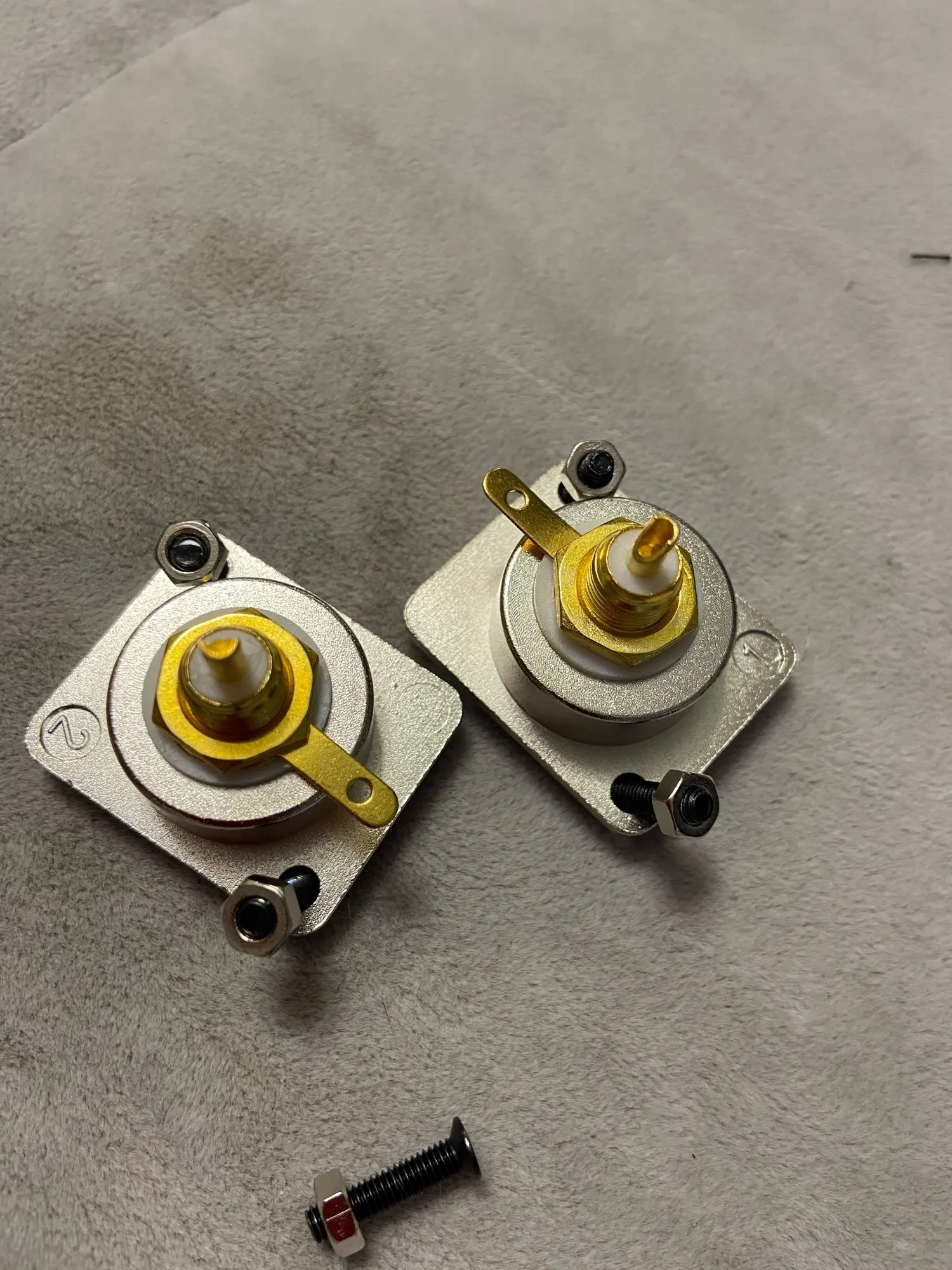 Упакованы парами в фирменные пакетики. Пришли примерно недели за три. Качество материалов и изготовления очень хорошее. В комплекте также крепёжные винты с гайками. Если нужно, на фланцы можно установить RCA гнёзда более высокого уровня. Рекомендую товар и продавца.