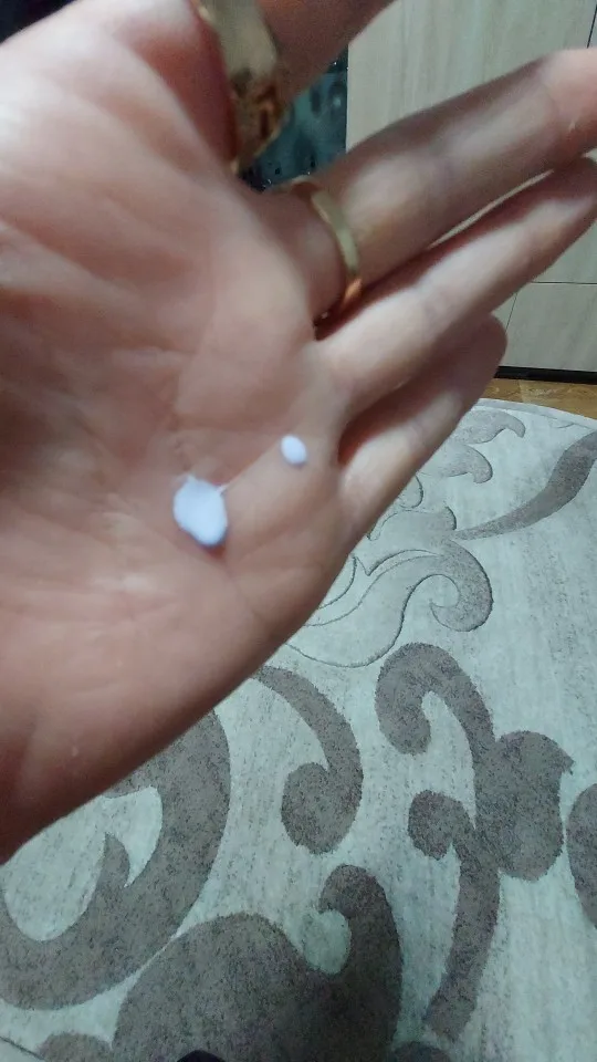 Долгая доставка. Тюбик плохо был закрыт и пролился. Прозрачно белый цвет.