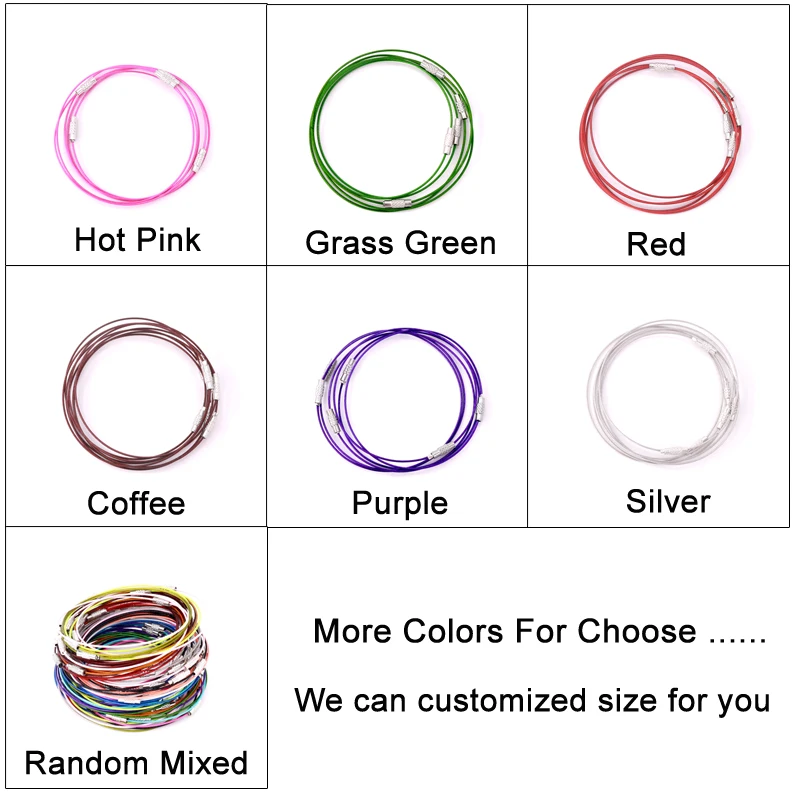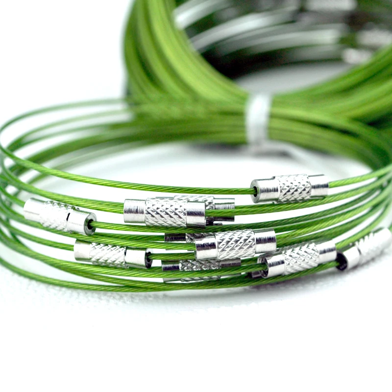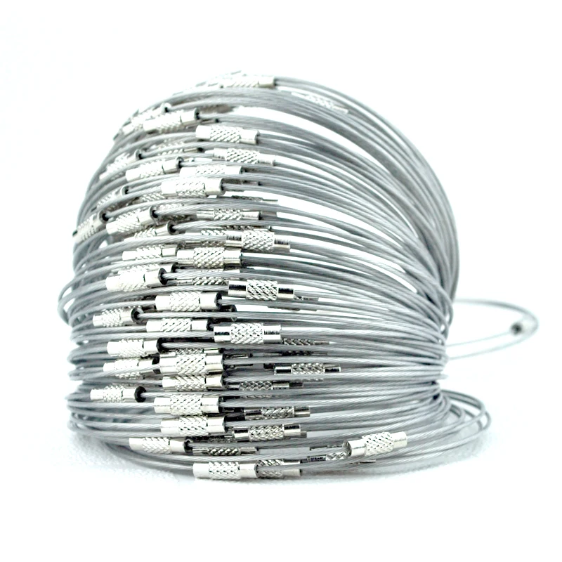 100 шт.лот, витой стальной трос, брелок, кабельная петля, брелок, цепи, винтовой браслет, ювелирный аксессуар, DIY шнуры 9 дюймов