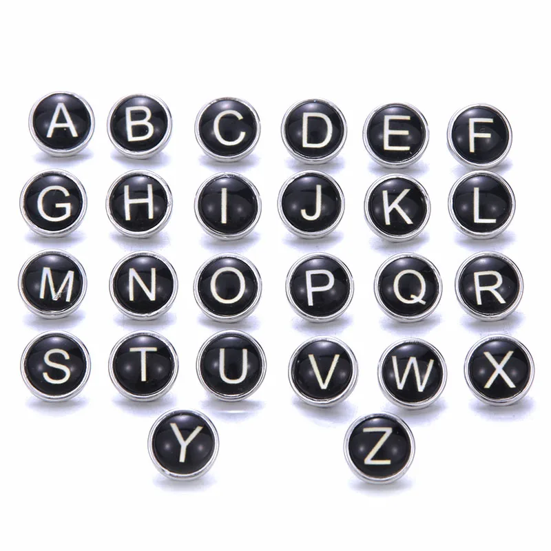 Черные буквы стразы, металлические стеклянные круглые кнопки 12 мм, 18 мм, ювелирные изделия, алфавит детской модели, ювелирные изделия для рукоделия, ювелирные изделия
