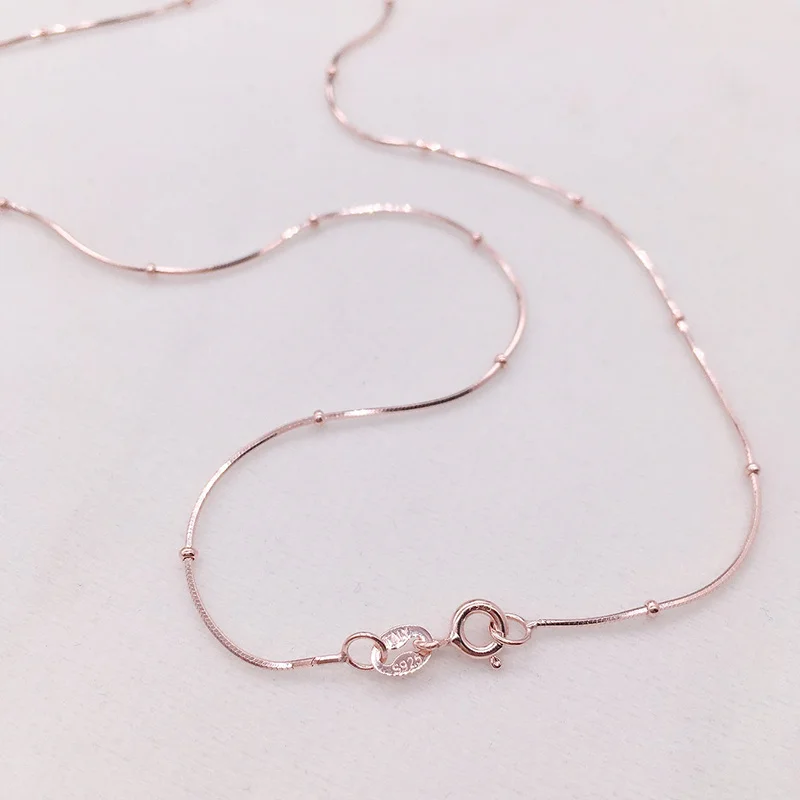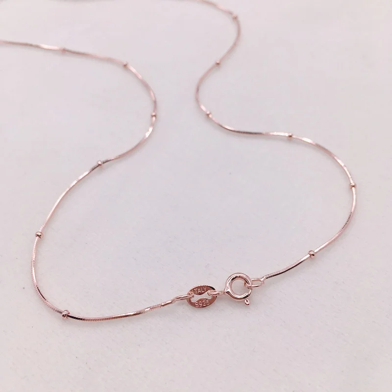 Тонкое ожерелье из стерлингового серебра 925 пробы с бусинами из розового змея золотистого цвета, цепочка для женщин и девочек, детское ювелирное изделие, колье, 35-80 см
