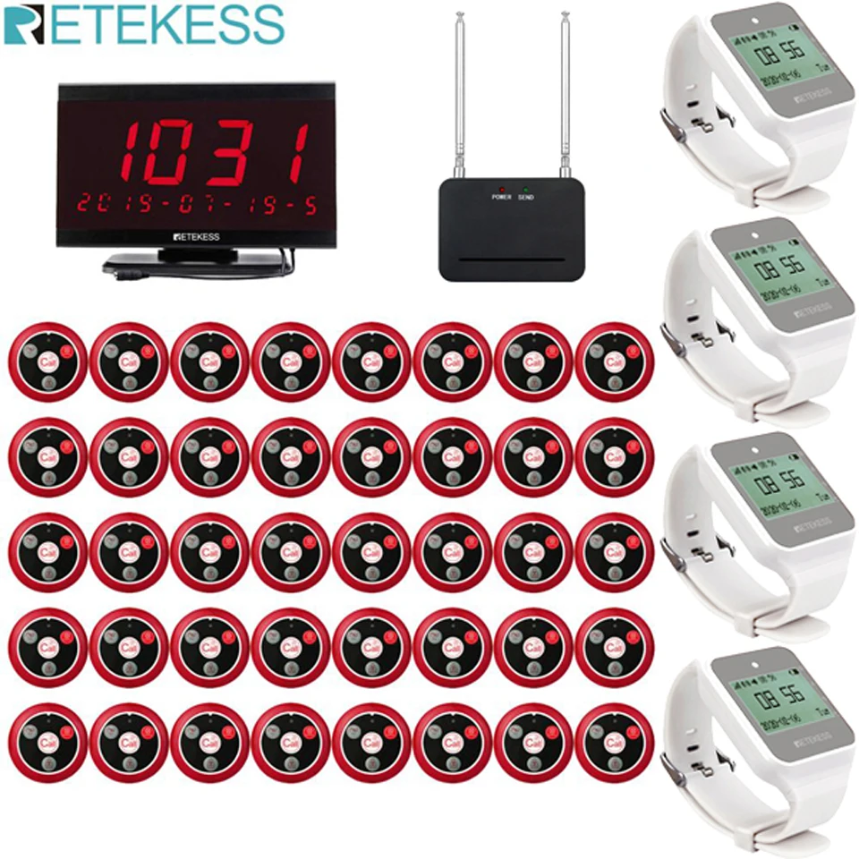 Retekess для выведения токсинов, 40 шт T117 кнопка вызова + 4 шт. TD108 часы приемник + приемник хост + Репитер сигнала мобильного телефона сигнальное устройство для ресторана беспроводной вызова Системы