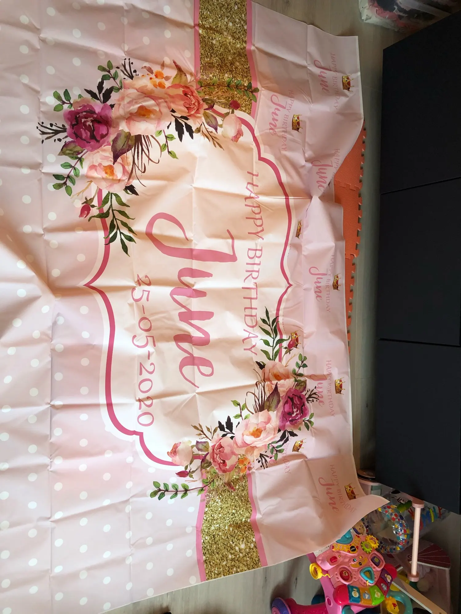 Фон для фотосъемки с розовыми цветами и золотыми блестками в горошек для девочек на день рождения