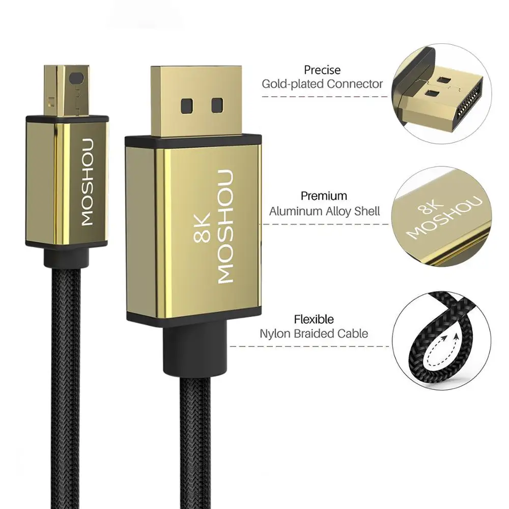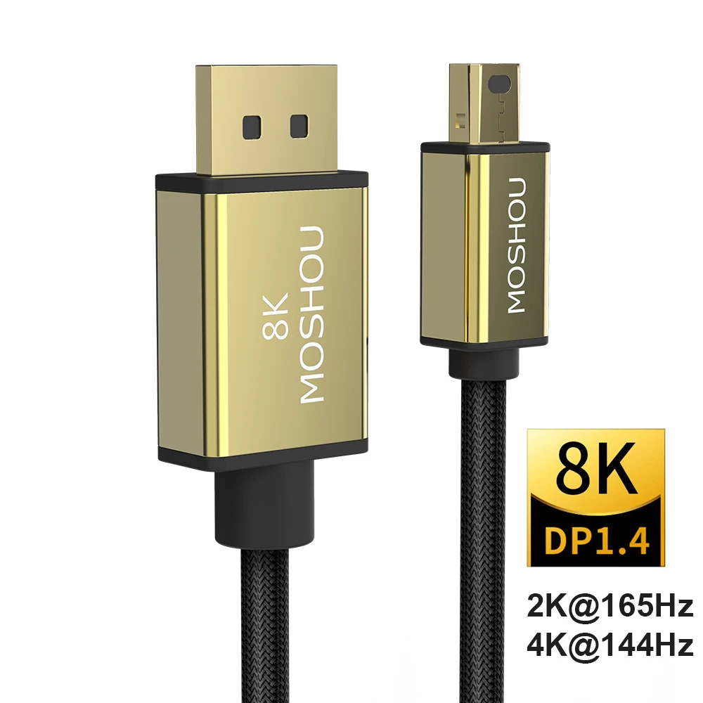Кабели 2021 DP к DP 1,4, видео 8K @ 60Hz 4K 120Hz MOSHOU 32,4 Gpbs 32bit HDR Displayport cable для ноутбука Mini DP к DP Cable
