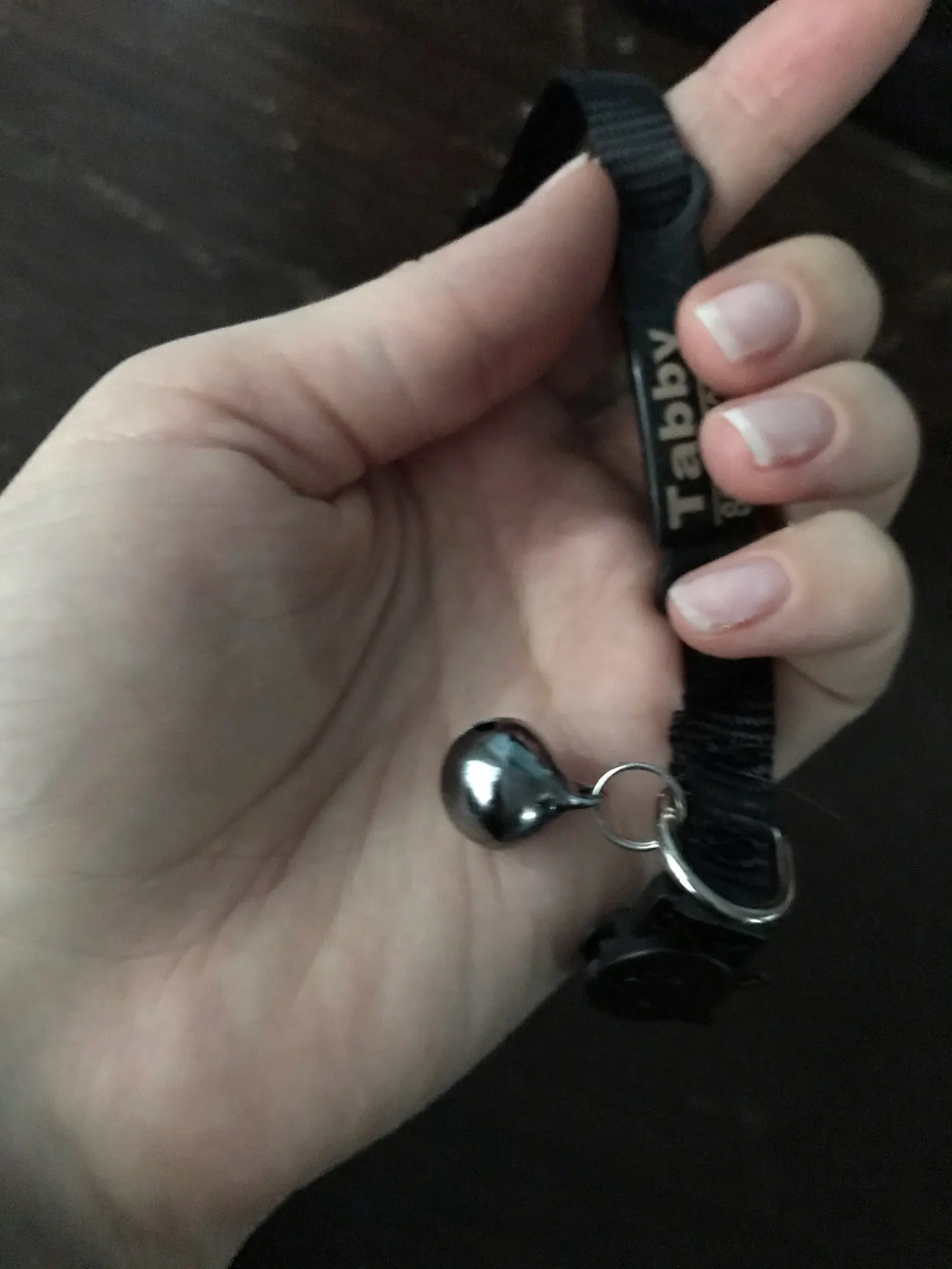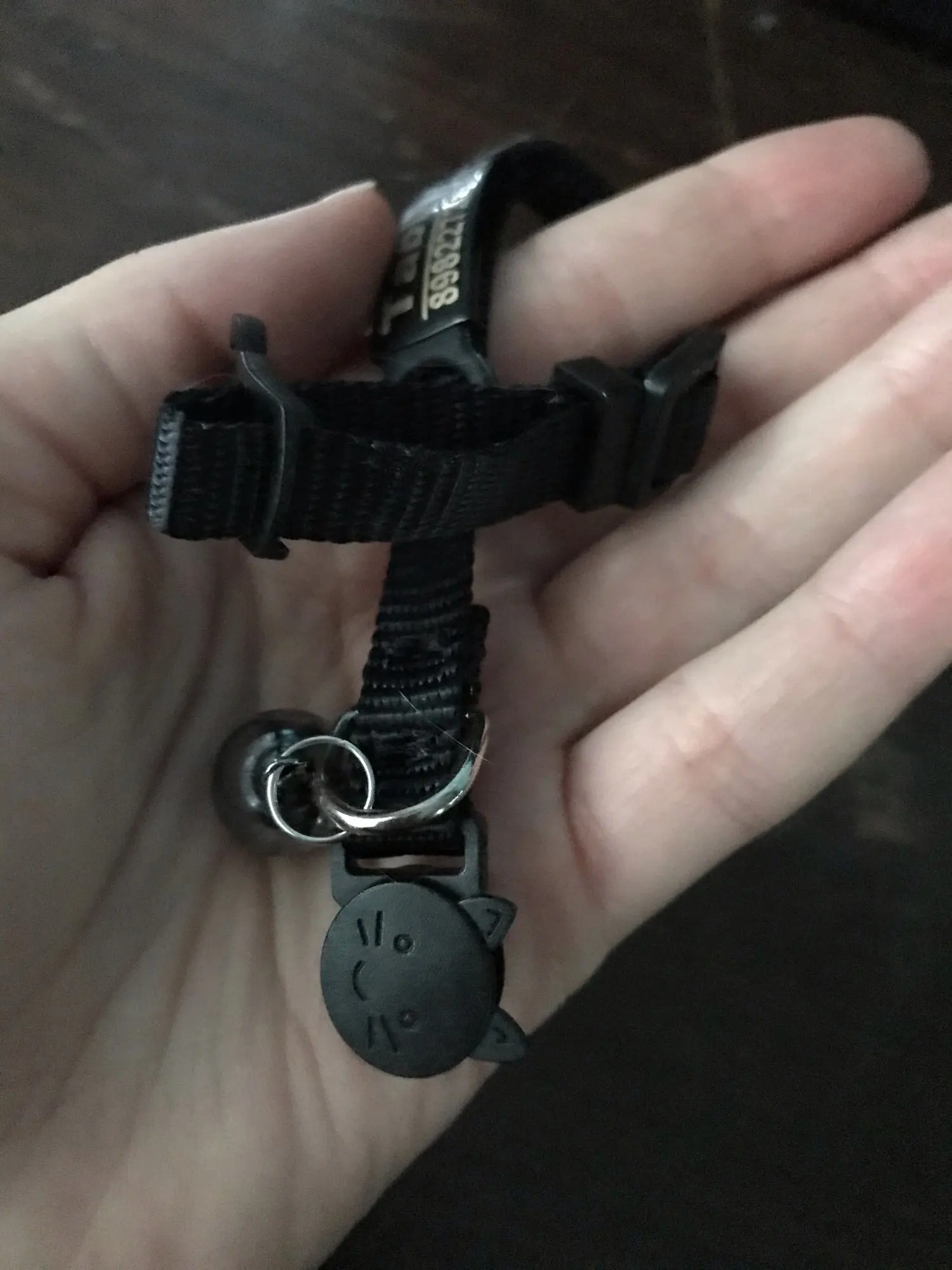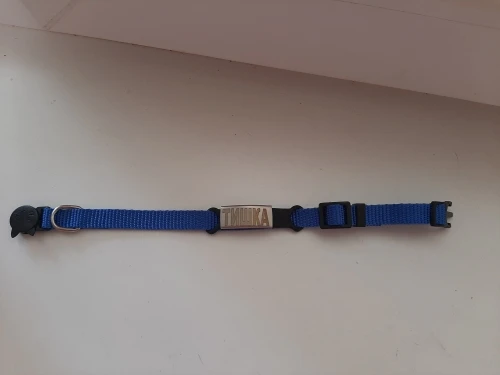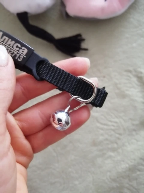 Хороший ошейник, но колокольчик я сняла. Единственное жалею, что не заказала с чёрной основой, там надпись красивее была бы