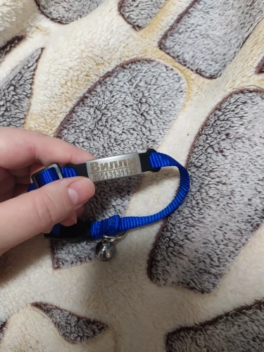 Отличный ошейник, надпись на адреснике соответствует указанной продавцу. Крепкая застежка, сам адрессник на силиконовых креплених. Не пахнет, кот относится спокойно. Единственное - сняла бубенец, так как кот слишком активный. Дошло очень быстро до Екатеринбурга,трэк отлеживается. Всем рекомендую и советую