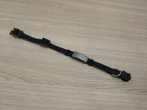 Гравировка выполнена точно. Застежка на ошейнике открывается при резком рывке, что важно если кошка сильно за что-то зацепится. Лента ошейника самая обычная, в среднем таких хватает на год или около Того. А вот адресник можно использовать и на других ошейниках.