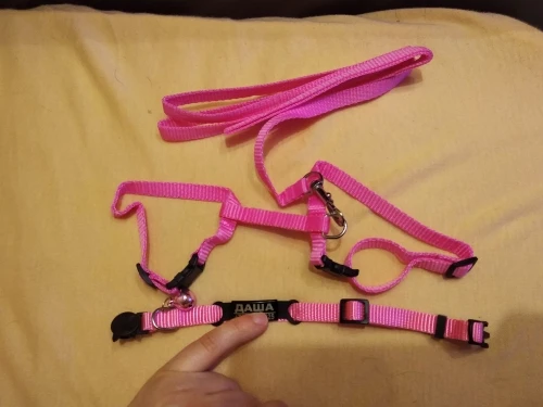 Ошейник отличный. Все как в описании. Товар отправлен 8 ноября, 24 уже получен. Понравилась застежка. Если сильно понятуть, она открывается, это отлично, если кошка зацепится за что-то, когда хозяина не будет рядом. И она не подходит для поводка, как кто-то писал в своем отзыве.Для нашего котенка был сильно великоват, даже при самом сильном затягивании, пришлось обрезать, чтобы ему было удобно. Когда вырастет, закажем новый.После заказа отправила продавцу сообщение с текстом гравировки. Продавец ответил быстро, сказал, что сделает все как написали, и не обманул. Рекомендую товар и продавца.