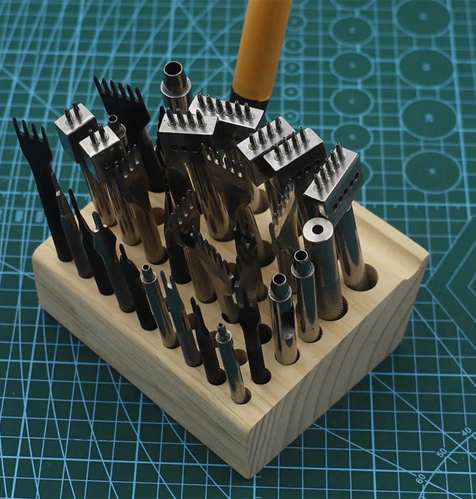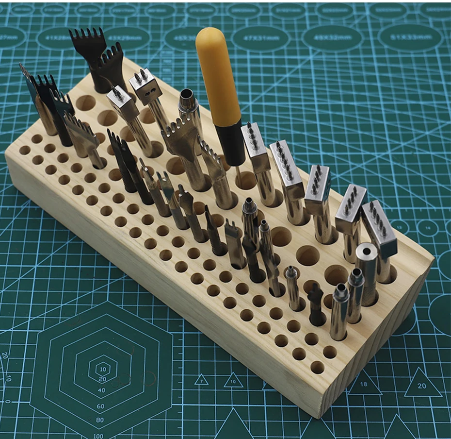 4698 отверстия сосновая деревянная Кожаная подставка для рукоделия DIY резная штамповка Инструменты держатель Органайзер Хранение кожаный ящик для хранения инструментов
