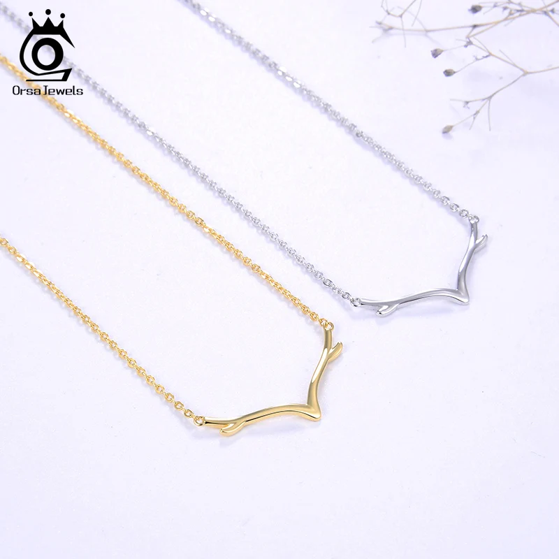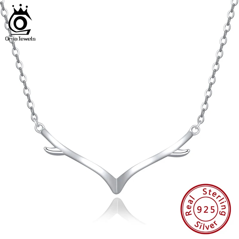 Ожерелье ORSA JEWELS S925 с кулоном в виде оленьих рогов, подвеска из стерлингового серебра с рождественской тематикой для вечеринки, романтичная Женская бижутерия SN164