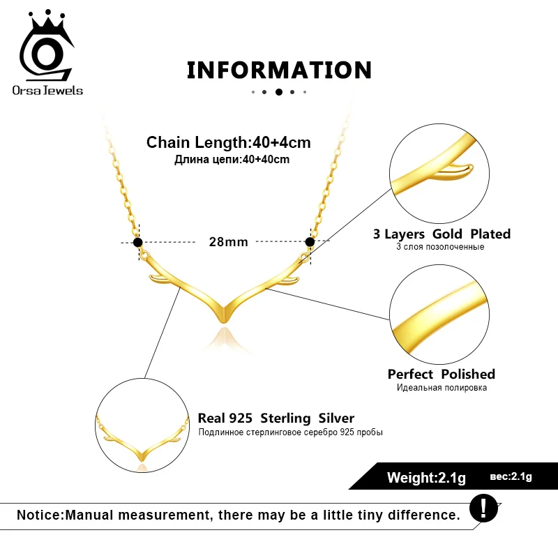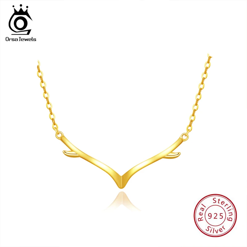 ORSA JEWELS S925 милый кулон в виде рога, ожерелье на Рождество, вечерние ювелирные изделия из стерлингового серебра, золотой кулон, Женские Романтические ювелирные изделия SN164