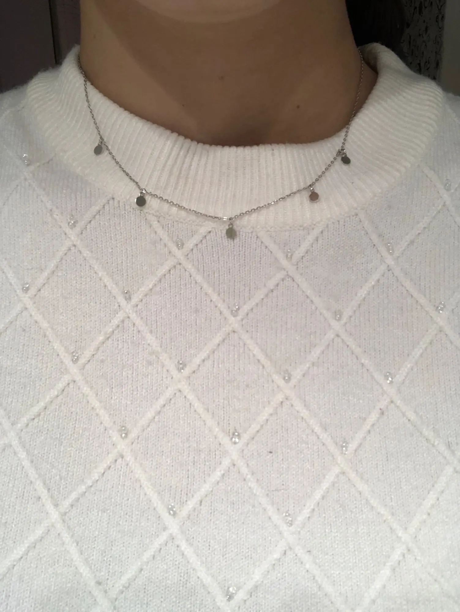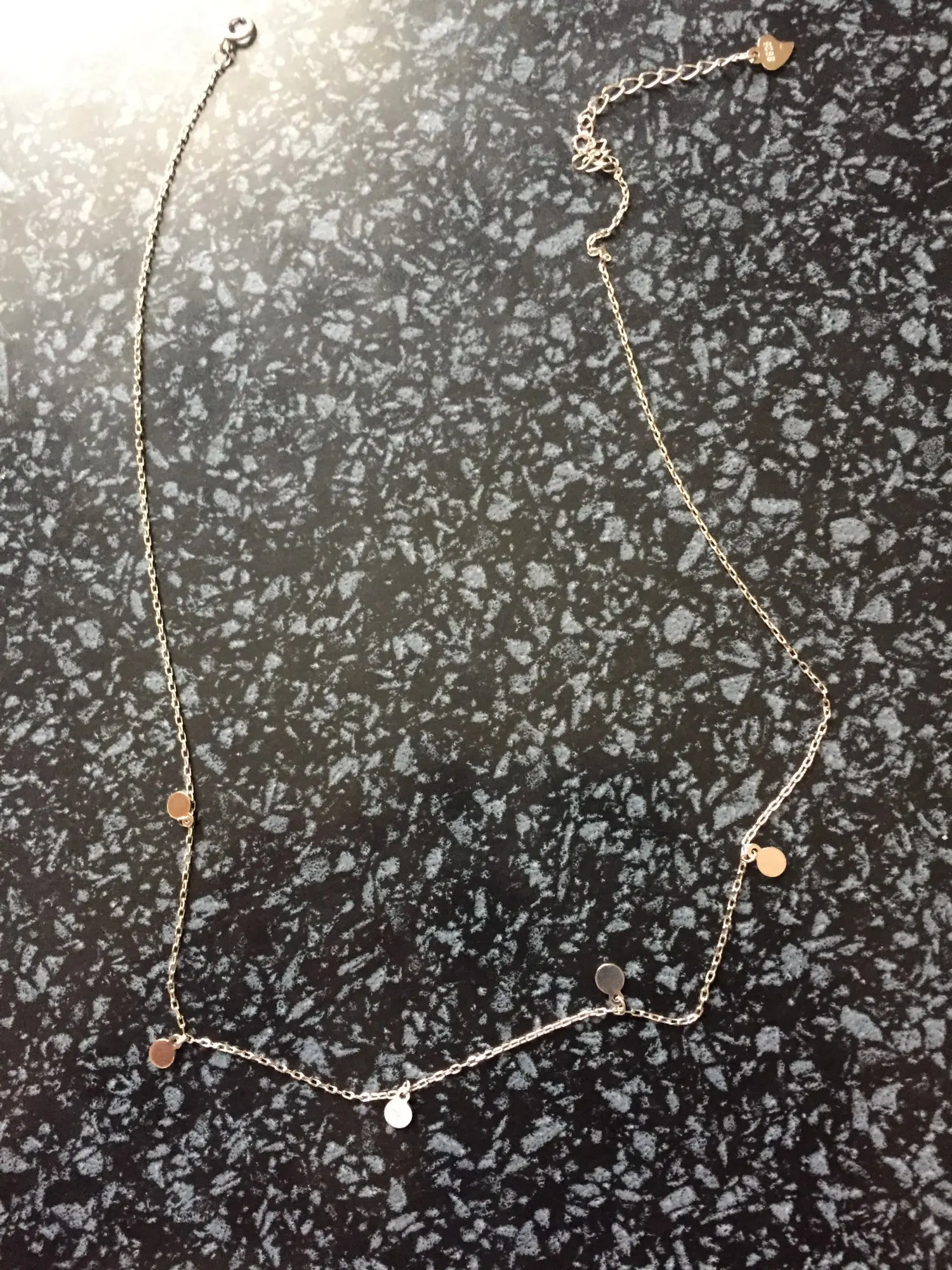 Очень красивое ожерелье, нежное и простое, но очень элегантное. Это выглядит как серебро, хотя я бы не знал, как сказать, что качество так хорошо, потому что это не заняло много времени, чтобы использовать его