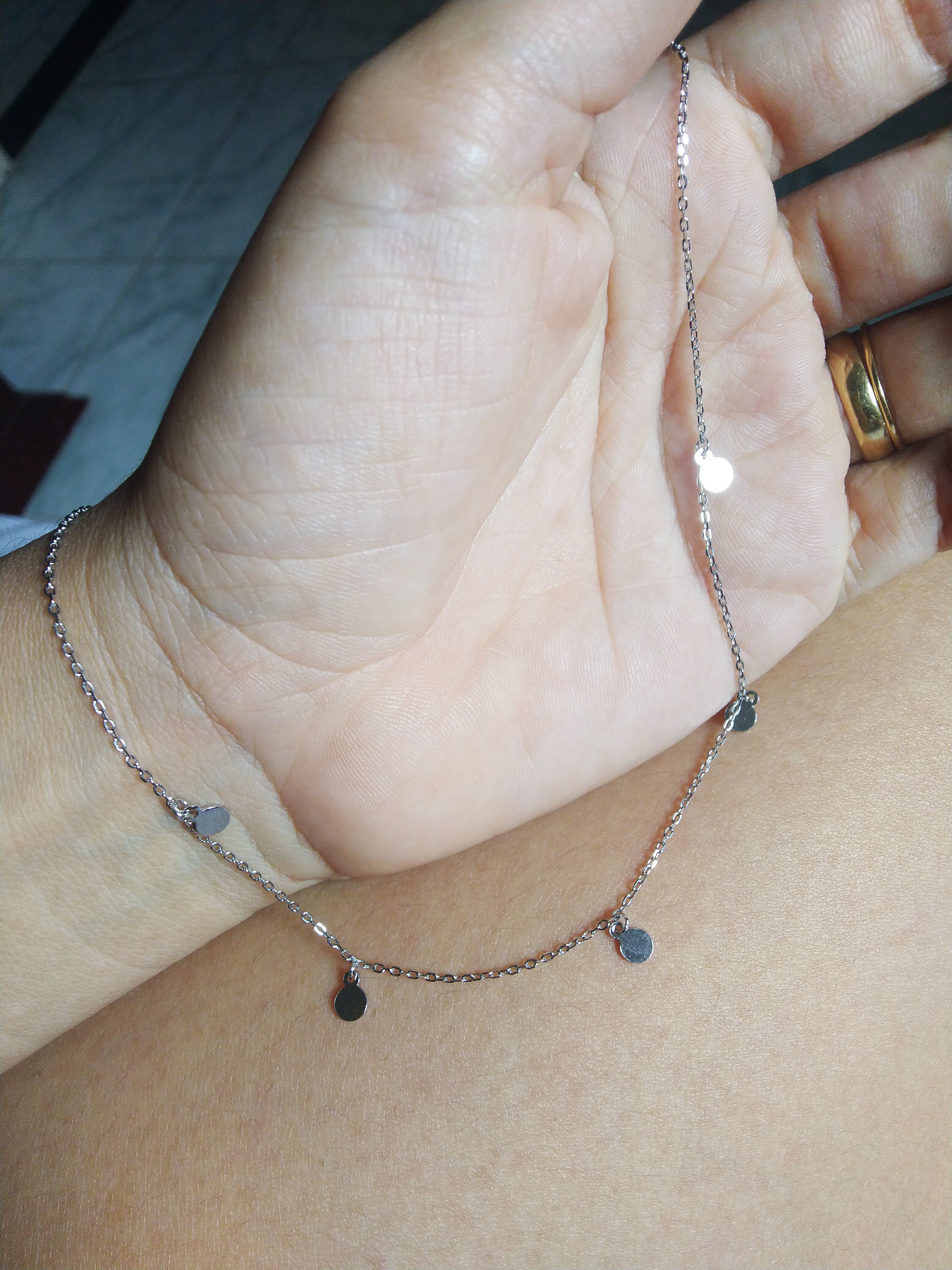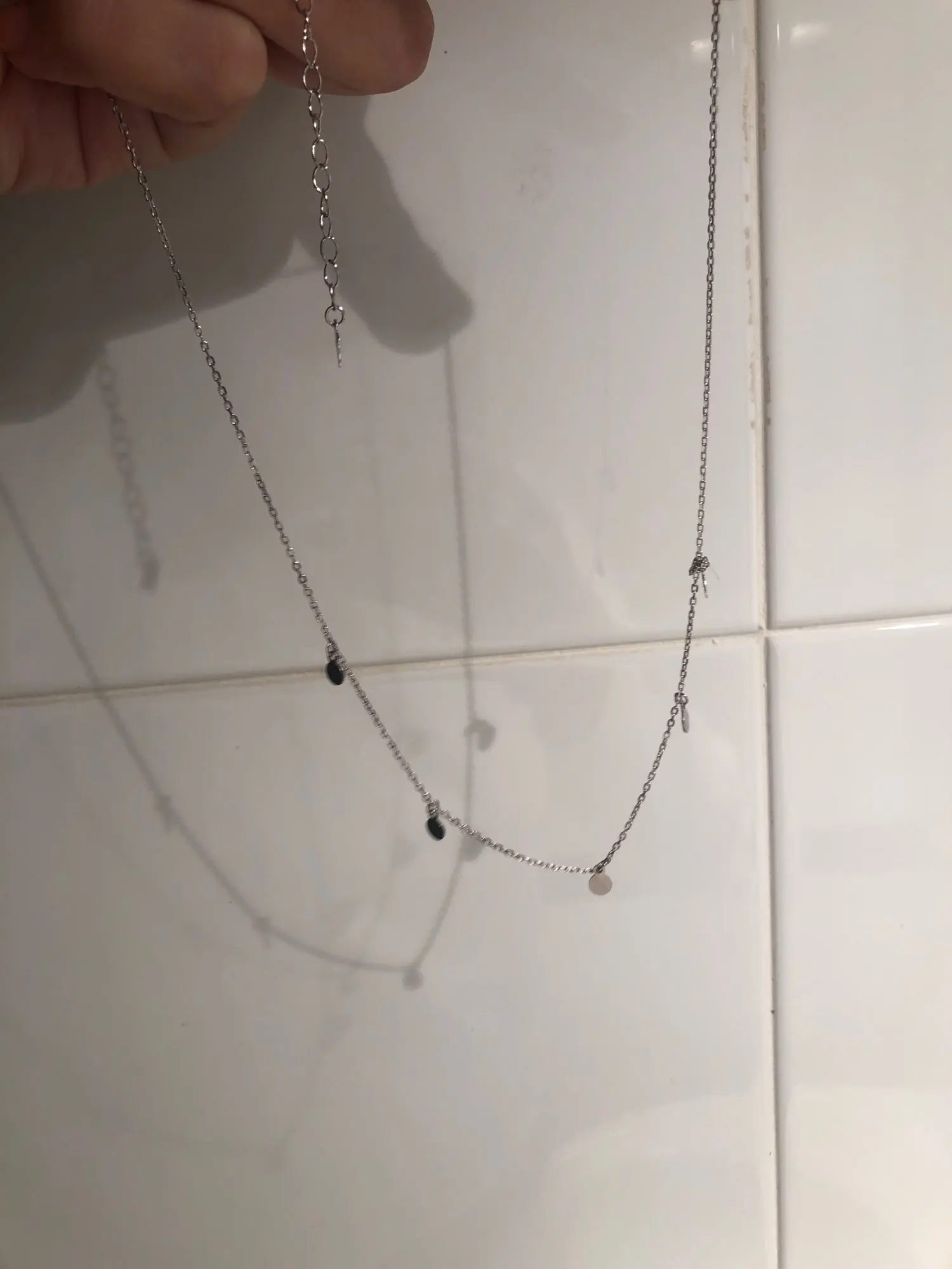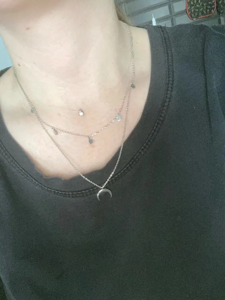На изображениях он выглядит совсем не так, как я получил его, круги крошечные, и они не заметят, цепочка очень короткая и не ценится, как на фотографии, Я должен был добавить к нему расширение