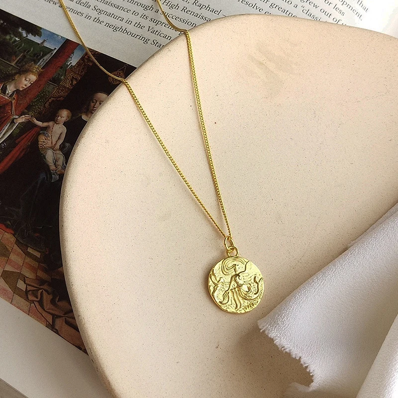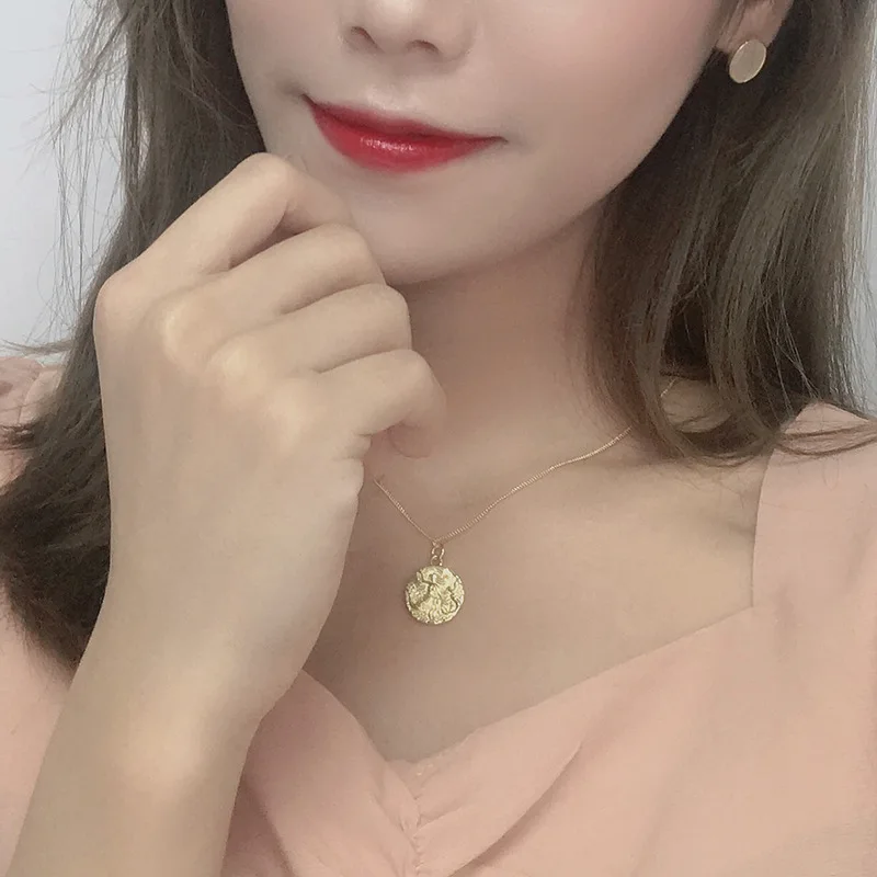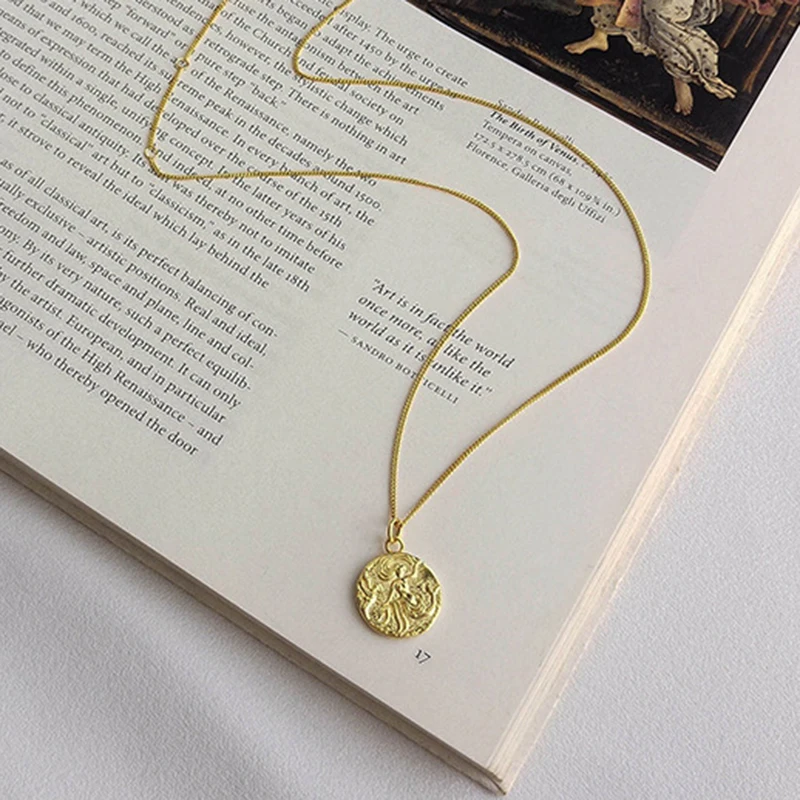 Особенность: ожерелье с медальоном золотого диска, 925 пробы подвеска в виде серебряной монеты s, рельефное ожерелье с камеей, минималистское ожерелье