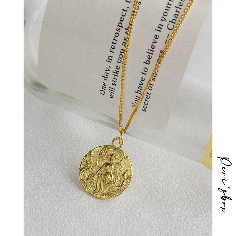 Ожерелье медальон Peri'sbox с золотым диском, колье из стерлингового серебра 925 пробы, подвеска в виде серебряной монеты, текстурированные ожерелья для женщин