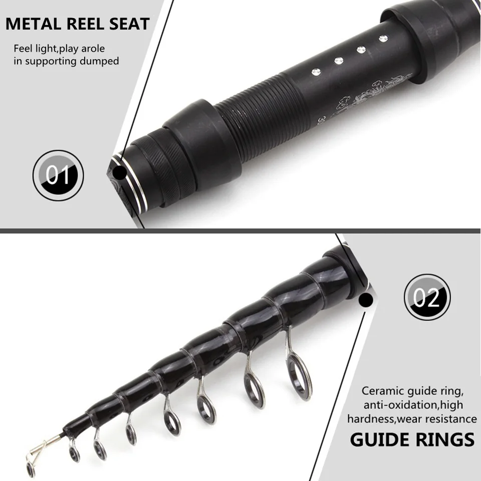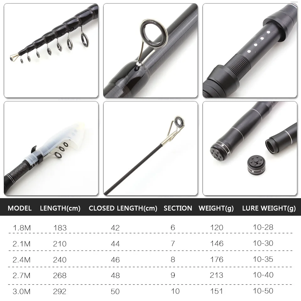 1,8 м, 2,1 м, 2,4 м, 2,7 м, 3,0 м, телескопическая удочка, карбоновая, портативная, для путешествий, рыболовные снасти