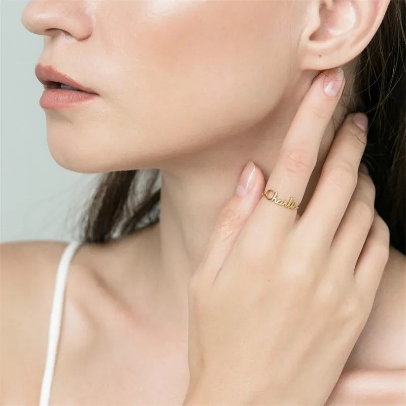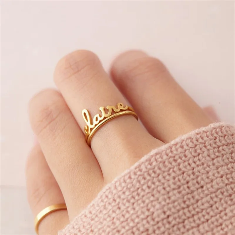 Женские кольца из нержавеющей стали золотого и серебряного цвета с именами на палец, кольца для пар, женские персонализированные ювелирные изделия на день рождения, подарок
