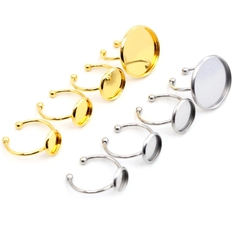 8, 10, 12, 20 мм, 10 шт.лот, не линяет, нержавеющая сталь, регулируемые настройки кольца, пустыебазовые, подходят для 8-20 мм стеклянных кабошонов, кнопок;