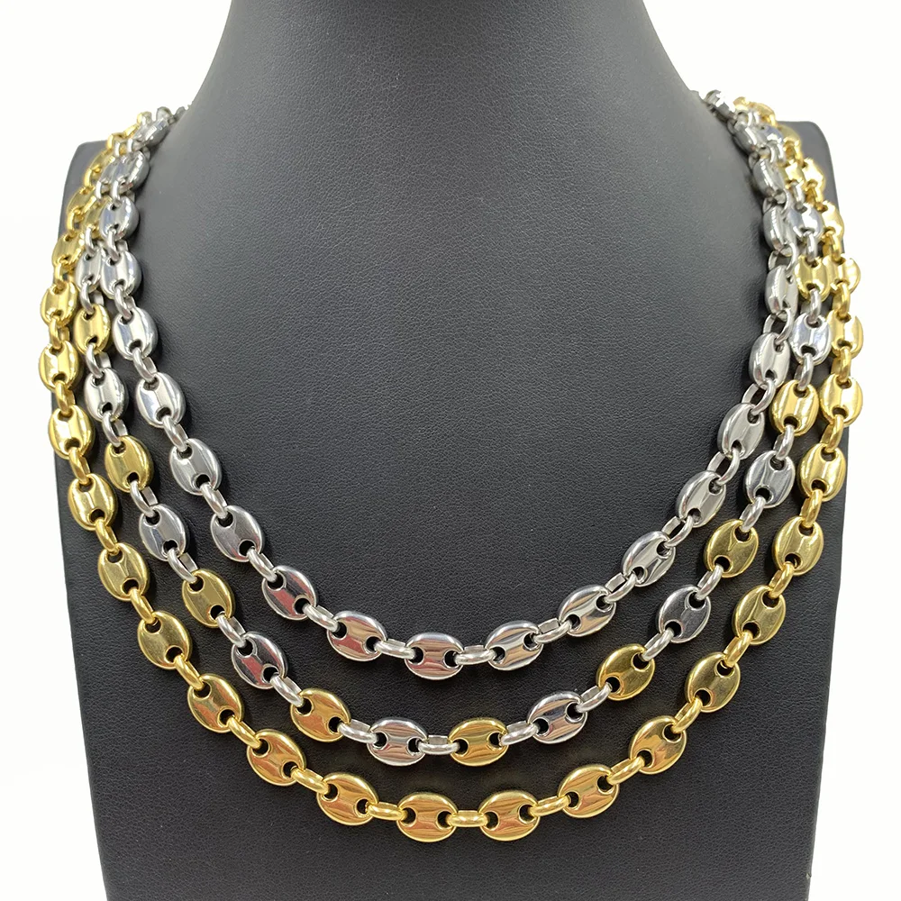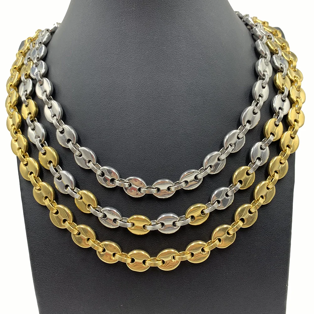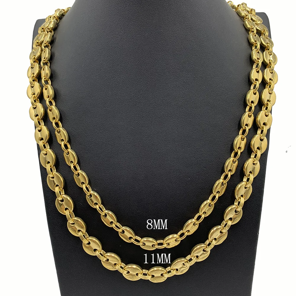 Ожерелье из кофейных зерен 6 мм, 8 мм, 10 мм, 13 мм, браслет, цепочки из нержавеющей стали для мужчин и женщин, ювелирные изделия ручной работы с золотым наполнителем 18-34 дюйма