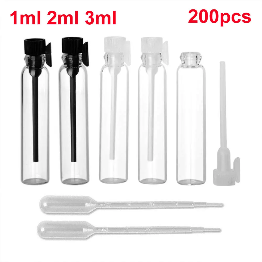 200 шт., пустые стеклянные флаконы для парфюма, 1 мл, 2 мл, 3 мл