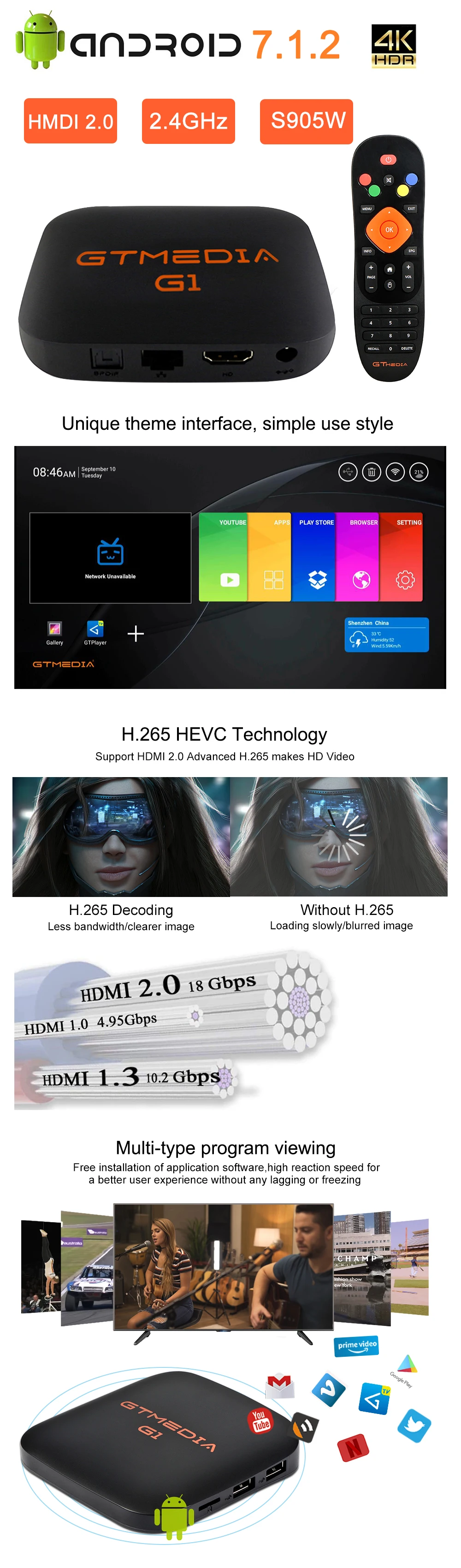 Номер моделиGTMEDIA G1 Android 7.1.2 Smart TV BOX