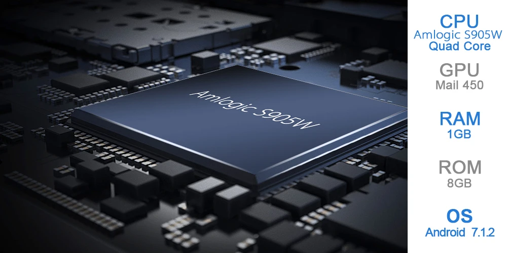 4.Amlogic S905W1GBRAM + 8GBROM.