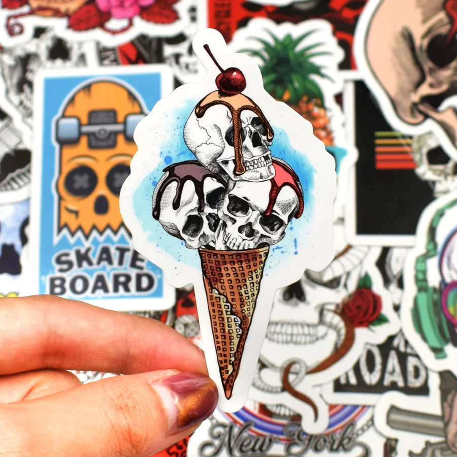 30 шт., водонепроницаемые ПВХ наклейки в виде черепа для скейтборда...
