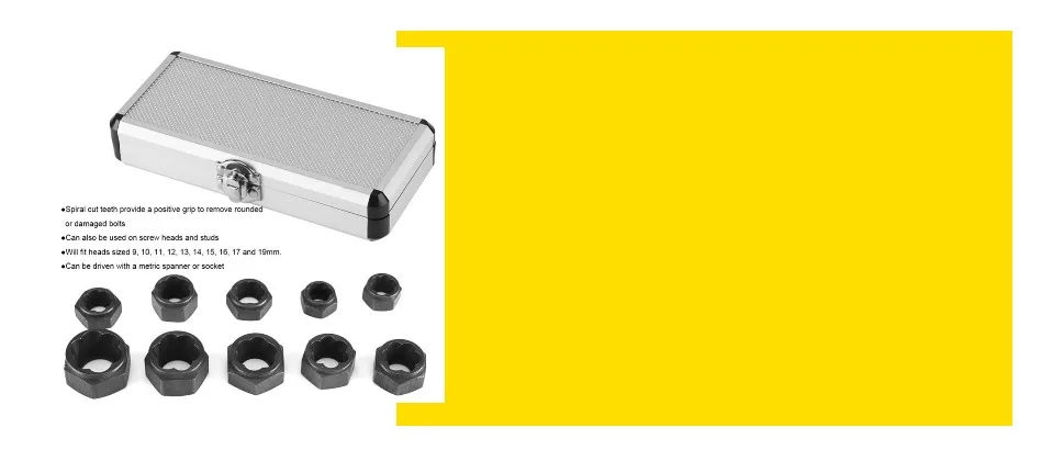 Специально спиральные режущие зубцы обеспечивают положительный захват для удаления закругленных или поврежденных болтов/гаек.