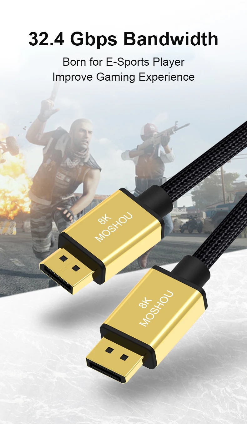 Порт дисплея 1,4 кабель 8K 4K HDR 60Hz 144Hz 165Hz порт дисплея для видео ПК ноутбука TV RTX 3080 DP 1,4 to DP Cabo