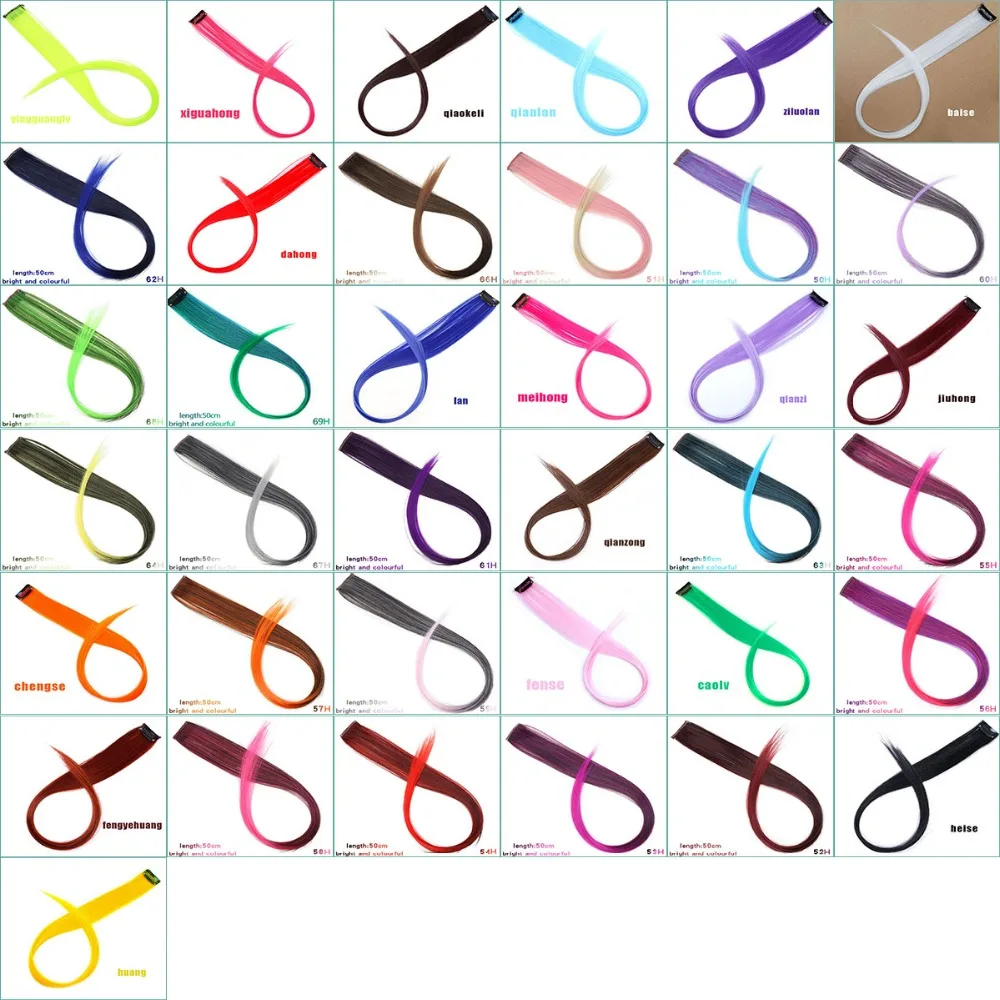 Allaosify синтетические удлинители волос с одним зажимом, 18 цветов, Длинные прямые, серые, красные, радужные волосы, Хайлайтер для волос