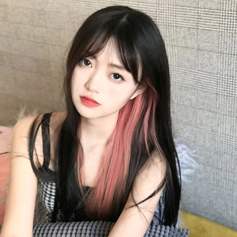 Накладные искусственные волосы LUPU, длинные прямые, с радужным мел...