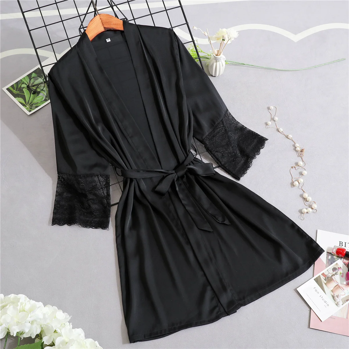 Кружевное кимоно мини-платье с рукавом до локтя, новинка, Свадебный халат для невесты и подружки невесты, Повседневная Домашняя одежда с V-образным вырезом, мягкая Пижама, Неглиже