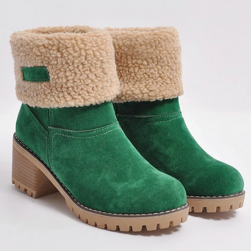 Зимние ботильоны, женские зимние ботинки на квадратном каблуке, женские плюшевые теплые ботинки из флока на платформе, женские слипоны