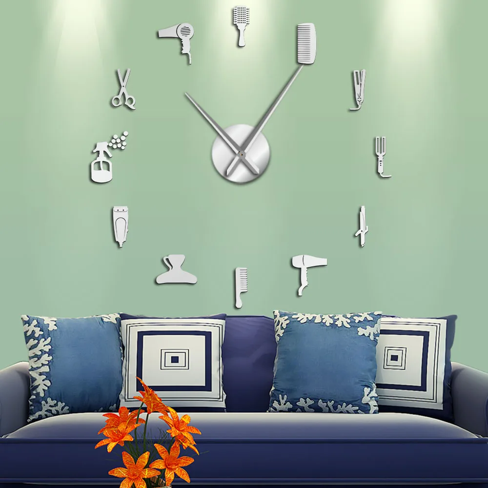 Гигантские настенные часы сделай сам с зеркальным эффектом, инструменты для парикмахера, декоративные Бескорпусные часы, парикмахерский Настенный декор