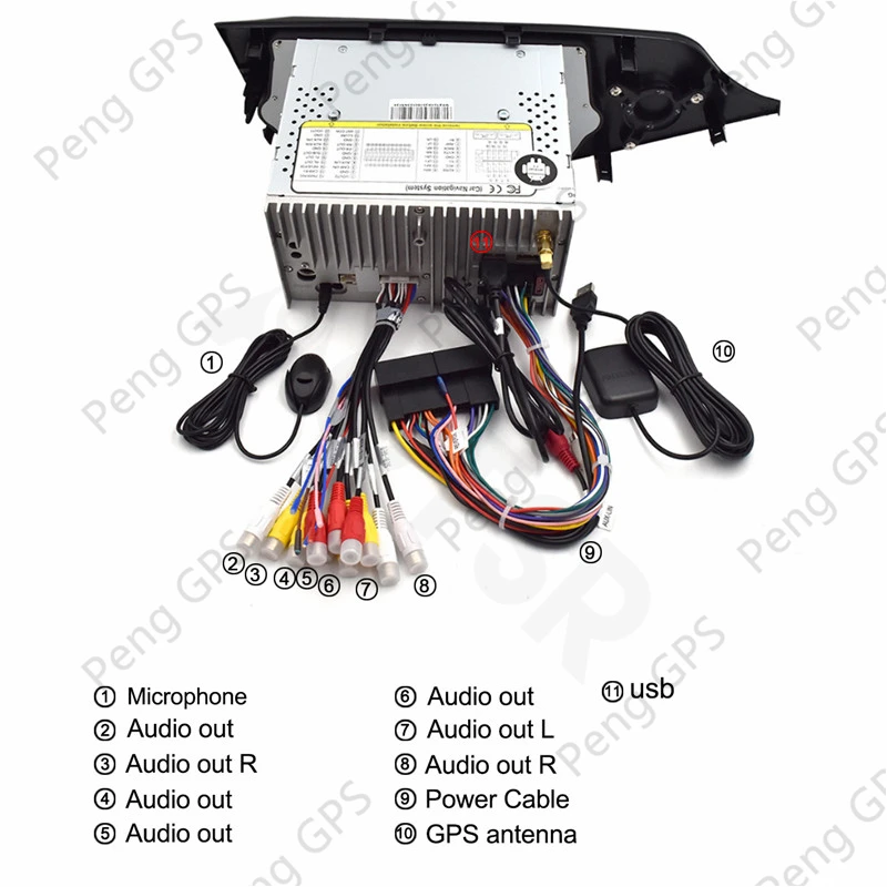 Наш продукт поставляется с GPS антенной, gps-картой для вашей страны, usb-адаптером, аудио и видео входным кабелем, кабелем питания... и т. д., все наборы для установки будут в посылка.