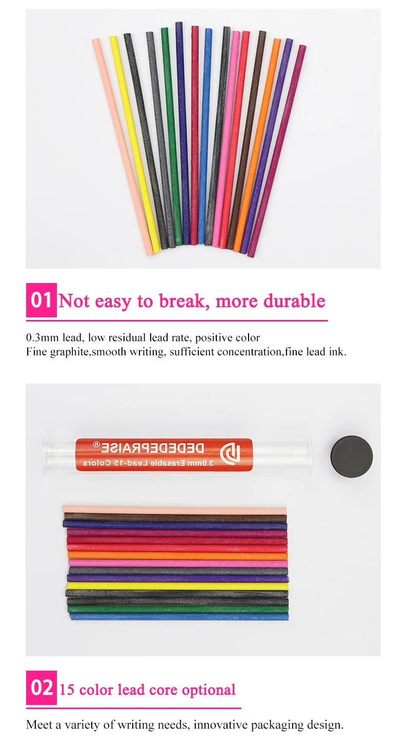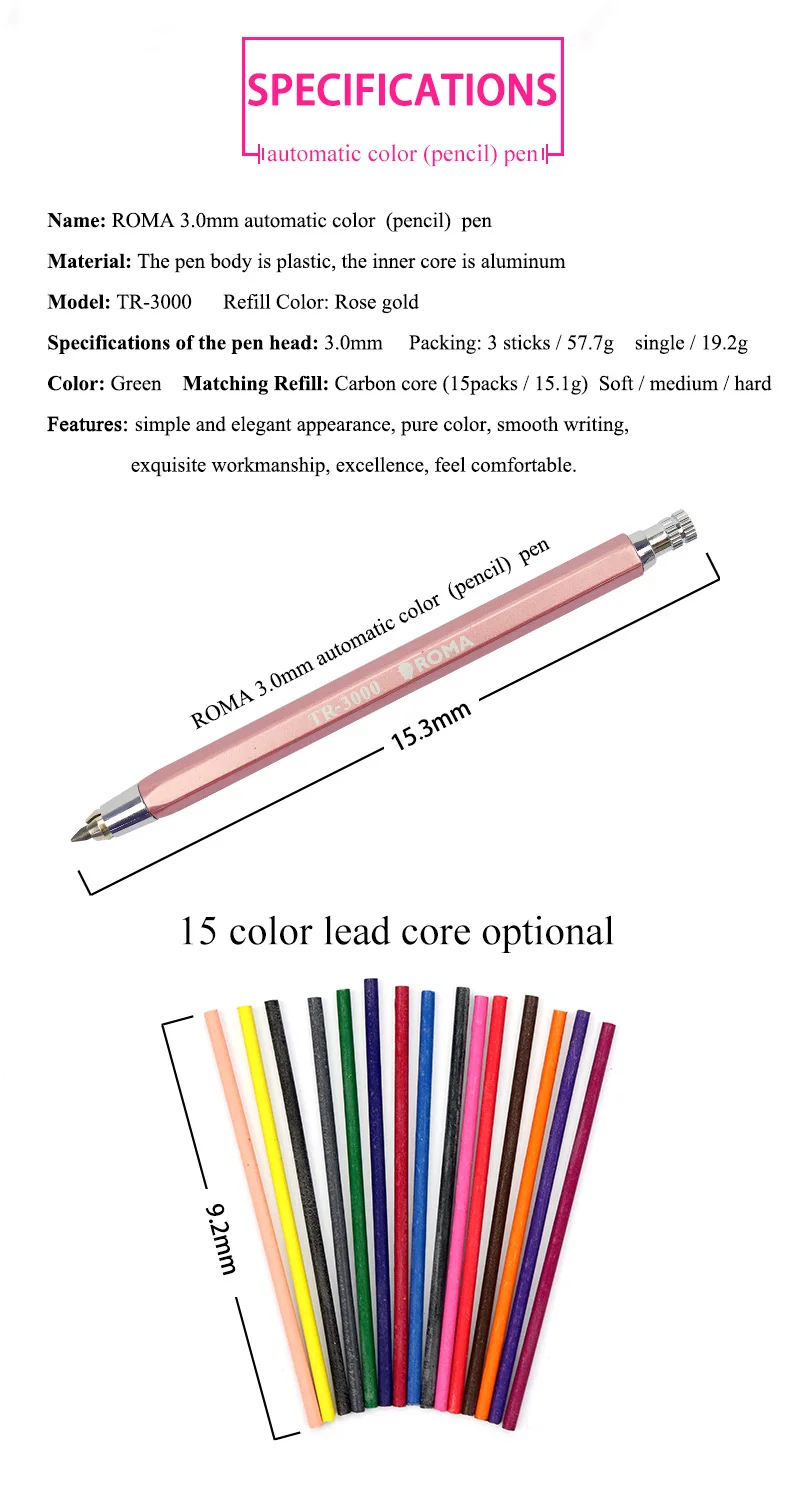 Механический карандаш, цветной грифель, 3,0 мм, аниме, стержень, автоматический карандаш, цветные заправляемые, офисные и школьные принадлежности, TR-3000